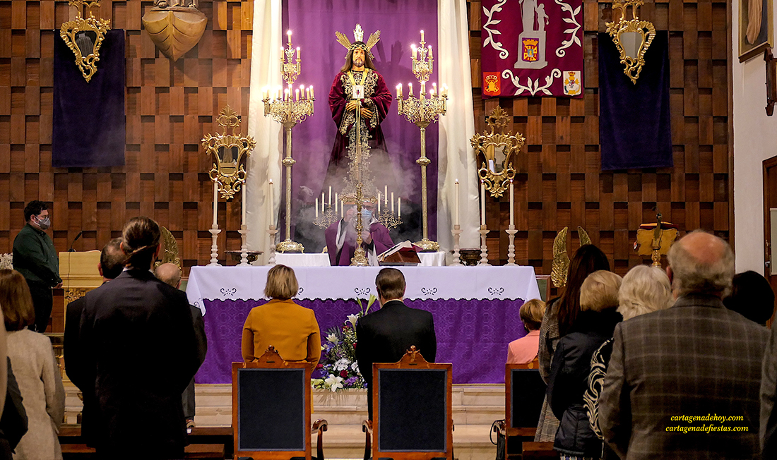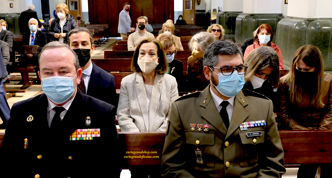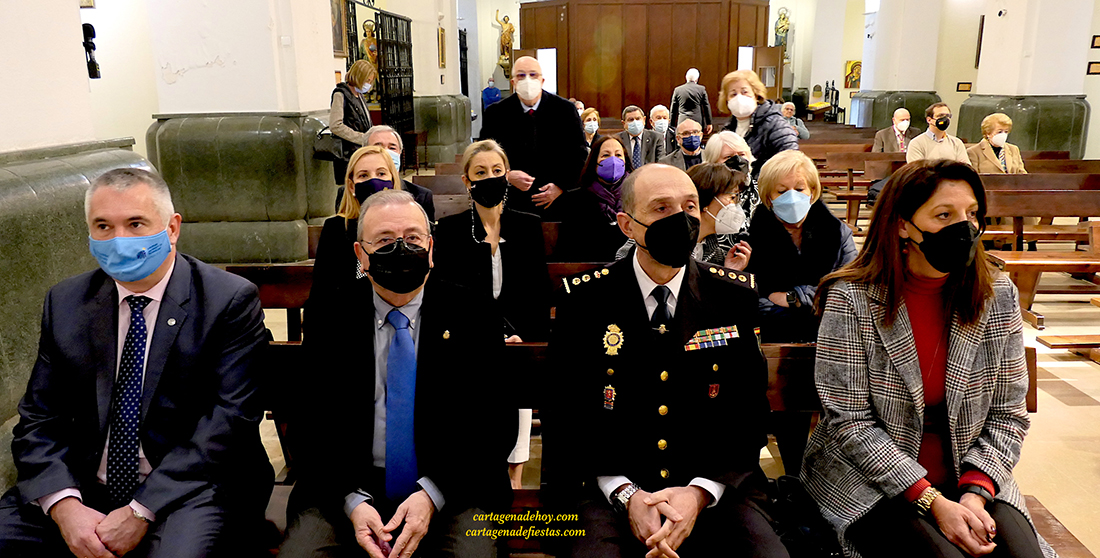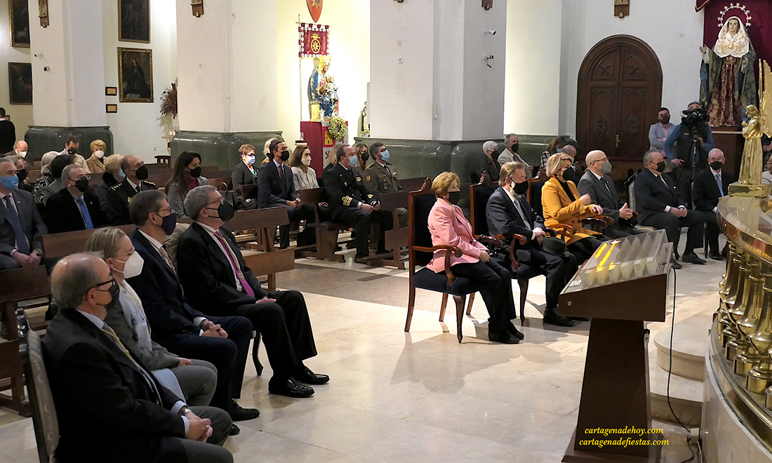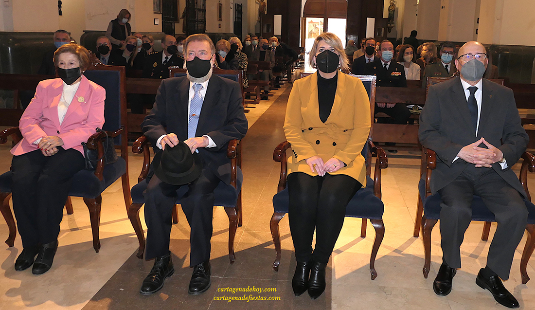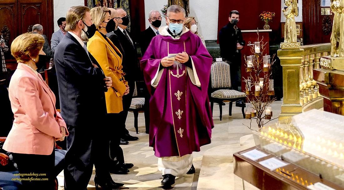 El acto en el que recibió la medalla como 'Procesionista del año' tuvo lugar ayer en la iglesia de Santo Domingo durante la celebración de una eucaristía oficiada por Francisco Muñoz y que contó con la presencia de la alcaldesa de Cartagena y de los hermanos mayores de las cuatro principales cofradías pasionarias de la ciudad: Manuel Martínez, Marién García Boj, Francisco Pagán y Juan Carlos de la Cerra, por el orden, de izquierda a derecha, en el que se ubicaron. Fernando Navarro también estuvo acompañado por Pedro Negroles, presidente de la asociación que otorga el galardón, y otras personalidades de la sociedad civil y militar cartagenera.
