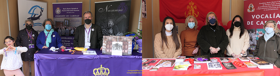 Las dos cofradías pasionarias han montado stand en la V Muestra del voluntariado que organiza la UCAM junto a la plaza de Héroes de Cavite y que culmina hoy. Ambas están representada en este encuentro por la comisión y la vocalía de caridad, respectivamente, cuyos integrantes explican a los visitantes la labor humanitaria que llevan a cabo durante todo el año.