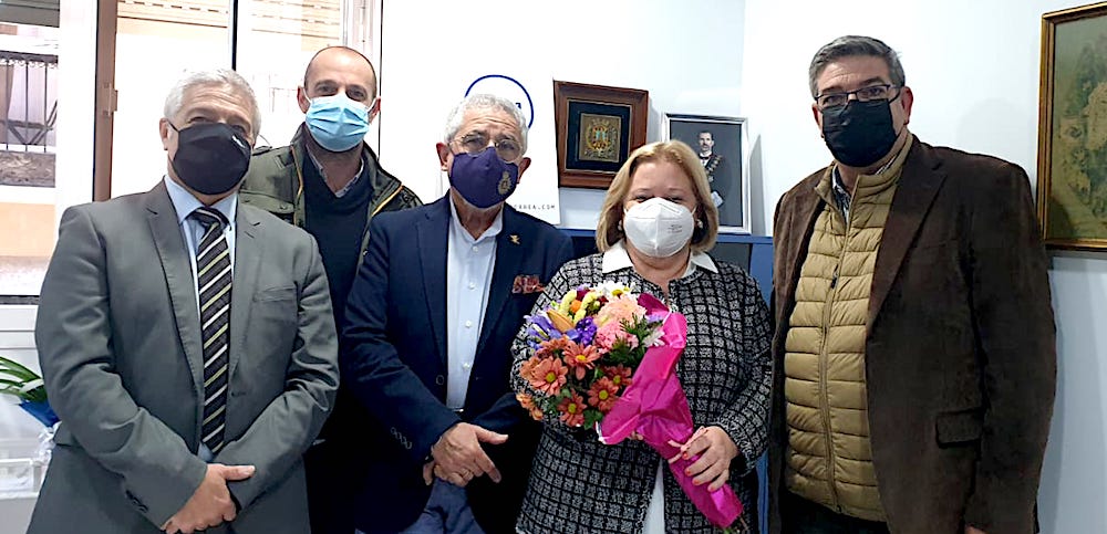 La presidenta de la Confederación de Organizaciones Empresariales de Cartagena (COEC) recibirá el título de honor de la agrupación de Soldados Romanos de la Cofradía de Jesús Nazareno, cuyo presidente, Salvador Paredes, fue quien le entregó el nombramiento junto a un ramo de flores, además de comunicarle que el día 27 de este mes, en el vestíbulo del Palacio Consistorial, lo recibirá de forma oficial.