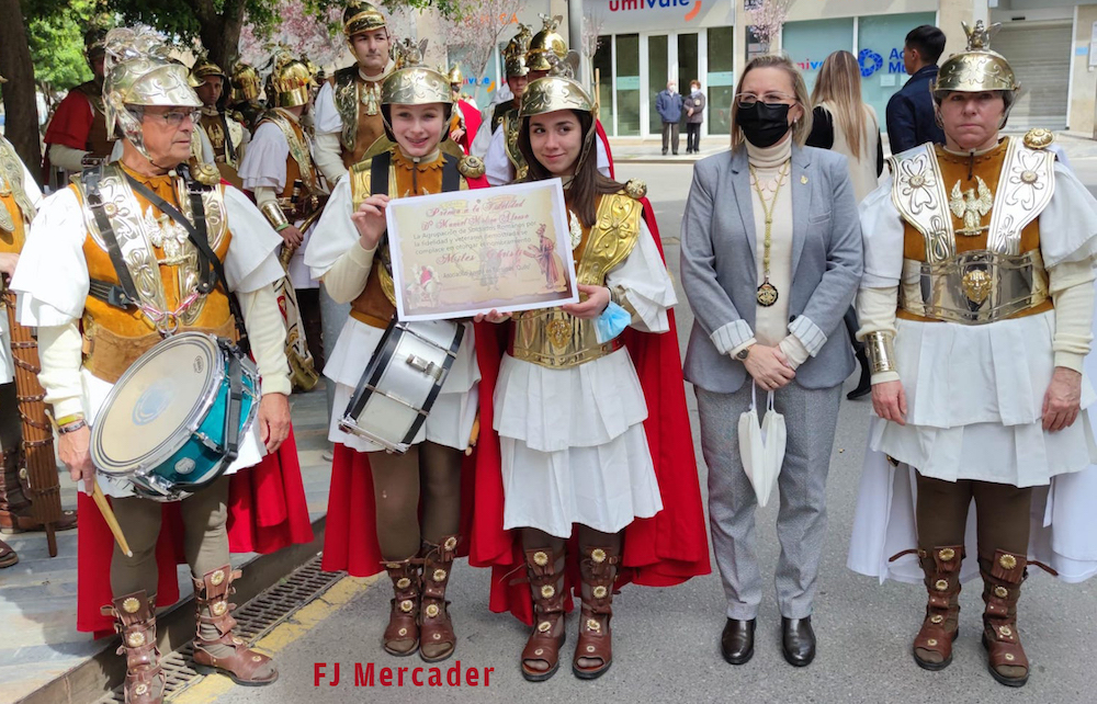 La agrupación de la Cofradía del Resucitado ha recuperado los pasacalles anunciadores de la proximidad de las procesiones de Cartagena con una ruta en la que han visitado el asilo de ancianos y han recogido a la hermana mayor en su residencia ubicada en el edificio que luce los azulejos de su Titular y de la Virgen del Amor Hermoso, con los que han llevado una ofrenda floral. Marién García Boj, con arenga incluida, se ha incorporado a la escuadra, que después ha distinguido con el premio ‘Manuel Molina-Miles Christi’ a la agrupación juvenil de tambores ‘Quillo’. GALERÍA DE FOTOS (pinchar aquí)