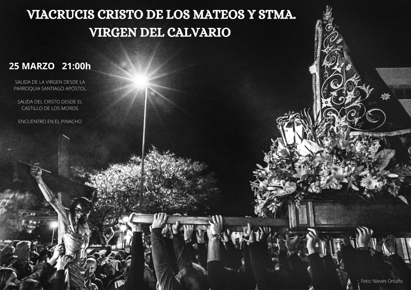 La villa y condado recupera el 'Vía Crucis del Cristo de Los Mateos y de la Santísima Virgen del Calvario', que se estrenó en 2019 con gran éxito y que después no ha podido celebrarse debido a la pandemia. La fotografía del cartel adjunto muestra el encuentro de hace dos años, que tuvo lugar en la zona de La Era. Después, ambos irán juntos en una procesión hasta la parroquia de Santiago Apóstol.