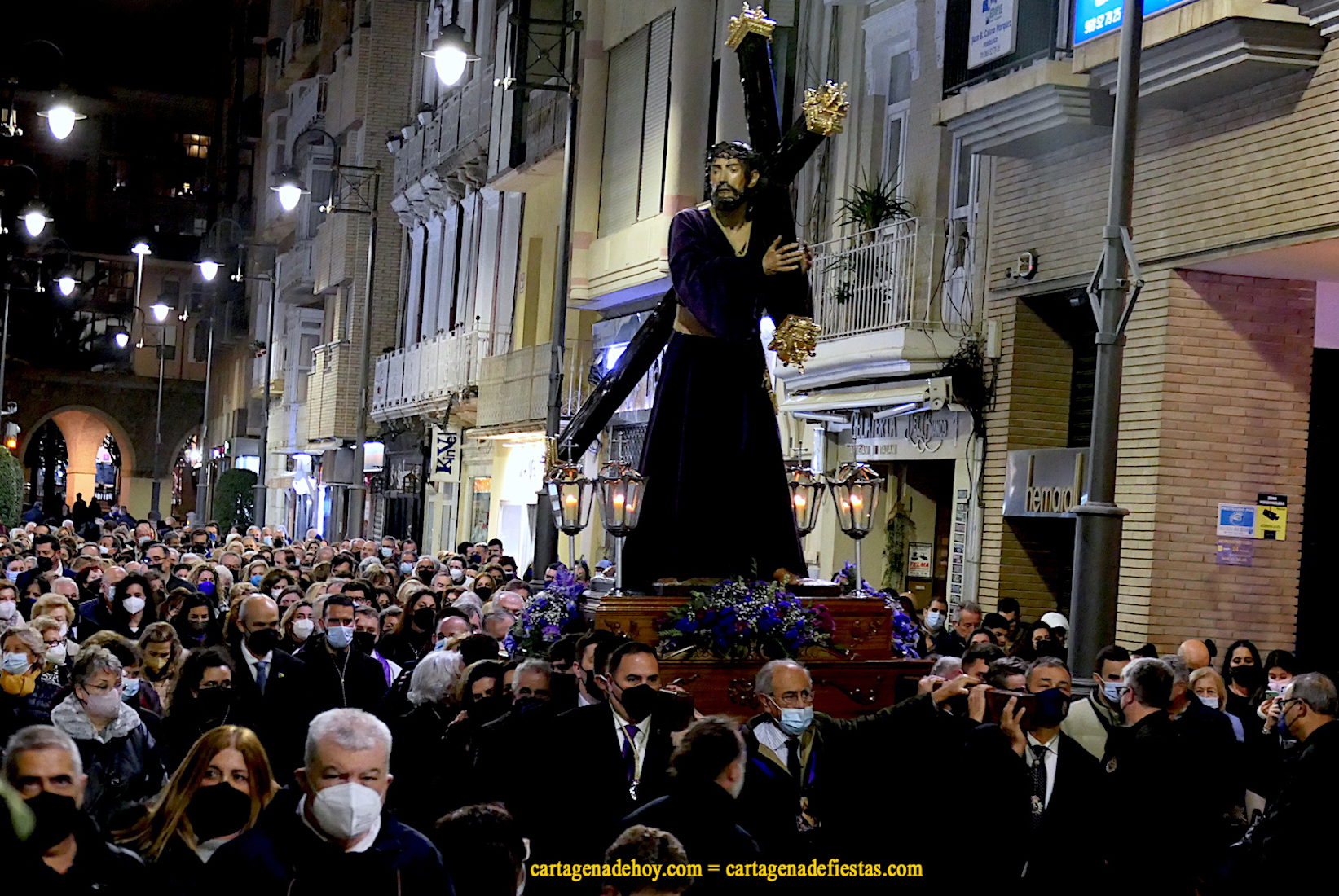 El Nazareno ha ido a hombros de las diferentes agrupaciones marrajas, que se han ido relevando en cada una de las catorce estaciones, siendo la mayoría de grupos de costaleros míxtos de hombres y mujeres. En cabeza iba la cruz reliquia de la Virgen de la Soledad del siglo XVII, estandarte de la agrupación del Santo Cáliz, siendo llevada por tres de sus representantes.