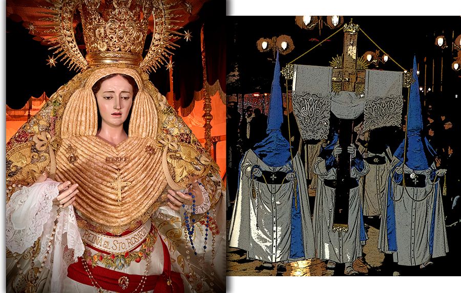 La agrupación, que sale en primera procesión california de la noche del Viernes de Dolores, ha recibido un pañuelo de hilo con tiras caladas de bolillo y encaje valencienne, realizado por Juan Carlos Romero a partir de un delantal de principios del siglo XX donado al colectivo pasionario por Leonardo Bodalo, procedente del ajuar de su abuela María Gabarron Osete. También son novedades este año el escapulario con los escudos de Infantería de Marina y Policía Naval (donados por estos cuerpos en el XXV aniversario de la bendición de la imagen) y un rosario de plata y cristal azul del siglo XXI, además de las galas de los tambores bordadas sobre raso azul.