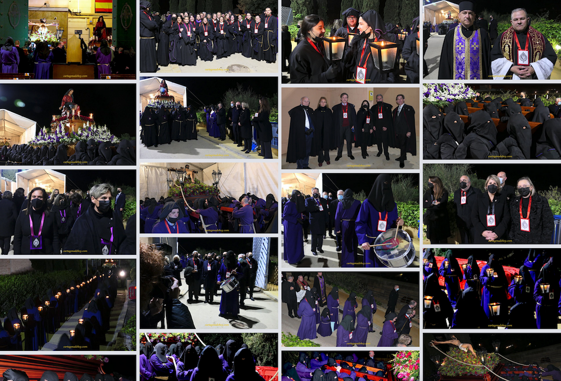 Esta vez, por seguridad sanitaria, se ha omitido la entrega de escapularios a los nuevos hermanos (lo recibieron al finalizar el triduo hace unas fechas). También ha sido novedad una ligera distancia del punto de partida (al parecer, el otro lugar estaba aún embarrado por las recientes lluvias) con el de los últimos años bajo una carpa en la calle del Sepulcro, pero sigue próximo a la Catedral de Cartagena que fue destruida por un bombardeo en 1939 y desde el que hasta hace unas décadas salía este vía crucis, pues en su interior se encuentra la capilla y la sala capitular que tuvo la hermandad.