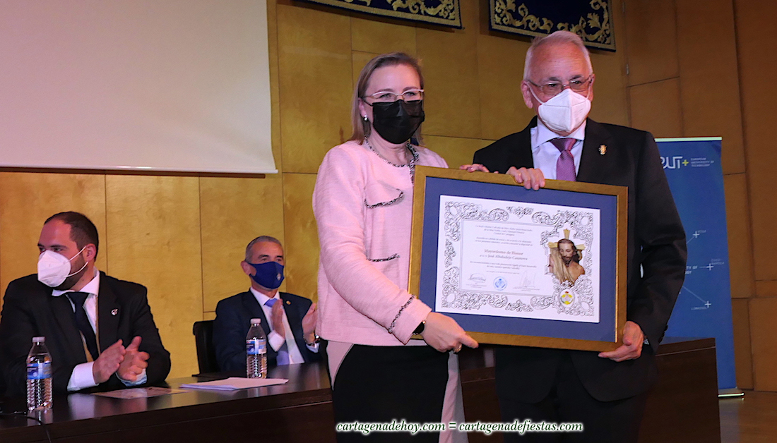 Además de un ramo de flores entregado a la Nazarena Mayor, Pilar Giménez, fue entregado el ‘Premio Resucitado’ al Regimiento de Artillería Antiaérea-73 de Cartagena, para después anunciarse que José Albaladejo Casanova era elegido ‘Mayordomo de honor’, título que no se ha otorgado en este siglo XXI y que ha sido un inmenso honor para su destinatario, quien sólo ha pertenecido a esta cofradía, en la que lleva 53 de sus 77 años como procesionista. “Empecé como tesorero con Joaquín Boj Segado, el abuelo de nuestra hermana mayor”, recordaba a Cartagena de Hoy quien durante mucho tiempo ha tenido cargos de responsabilidad en la hermanad y que actualmente es vicepresidente de la agrupación de la ‘Aparición de Jesús a María Magdalena’.