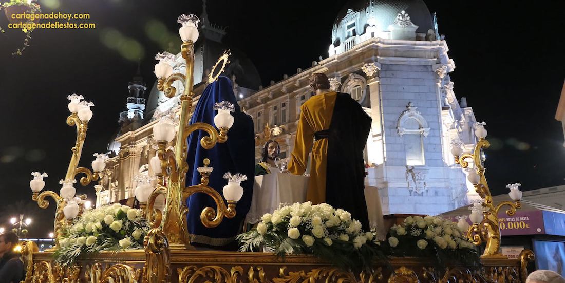 El trono de 'Jesús y María en la casa de Lázaro’, que tuvo que ser sacado del desfile por una avería en la dirección, pudo reintegrarse más tarde a la procesión del viernes noche del Cristo de la Misericordia y Virgen del Rosario. Aunque en un primer momento pensaban que el desperfecto era mayor, el equipo de iglesia logró repararlo y volvió al tercio de la agrupación de la Virgen por la calle de la Caridad.