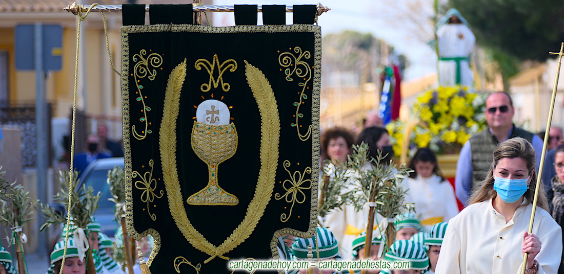 Jesús, con vestuario de hebreo, regresó tras tres años de espera por el paréntesis pandémica y estuvo arropado por unos ilusionados chavales del pueblo cartagenero, entre ramas de olivo, palmas y romero, reflejando que el futuro procesionista está asegurado en la Cofradía del Cristo de la Agonía.