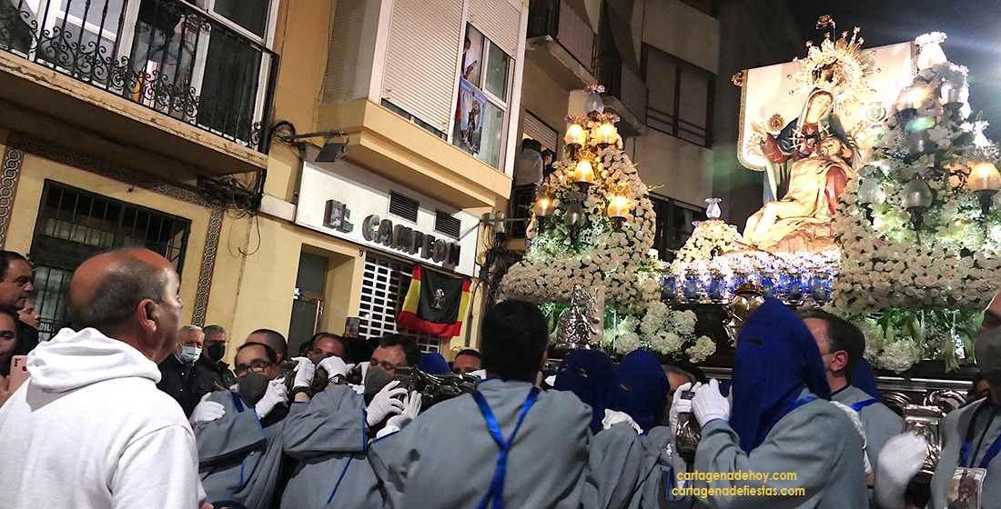 Destacar el númeroso público asistente y el tiempo, tanto el climático, que respetó, como el horario, cumpliéndose los previsto. Como era de esperar, la cola de la procesión fueron miles y miles de promesas tras una barrera humana formada por nueve agentes de la Policía Local de Cartagena.