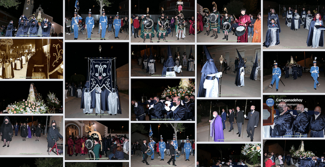 La Semana Santa volvió a protagonizar otra gran noche pasionaria con la Procesión del Silencio, compuesta por los tronos de la Cruz Vacía (llevada por mujeres), el Cristo de la Agonía (talla del siglo XVIII) y la Virgen, que también avanza a hombros. También forman parte del cortejo los tercios de penitentes, las damas, los romanos (legión de Sagunto de las Fiestas de Carthagineses y Romanos) y una representación de la agrupación de Escolta y Honores de la Cofradía del Resucitado. Junto al párroco, don Emilio, marcharon Enrique Pérez Abellán, concejal de Movimiento Ciudadano; Juan Manuel Ayaso, presidente de la junta vecinal; y José Fernández León, hermano mayor de la Cofradía del Cristo de la Agonía.
