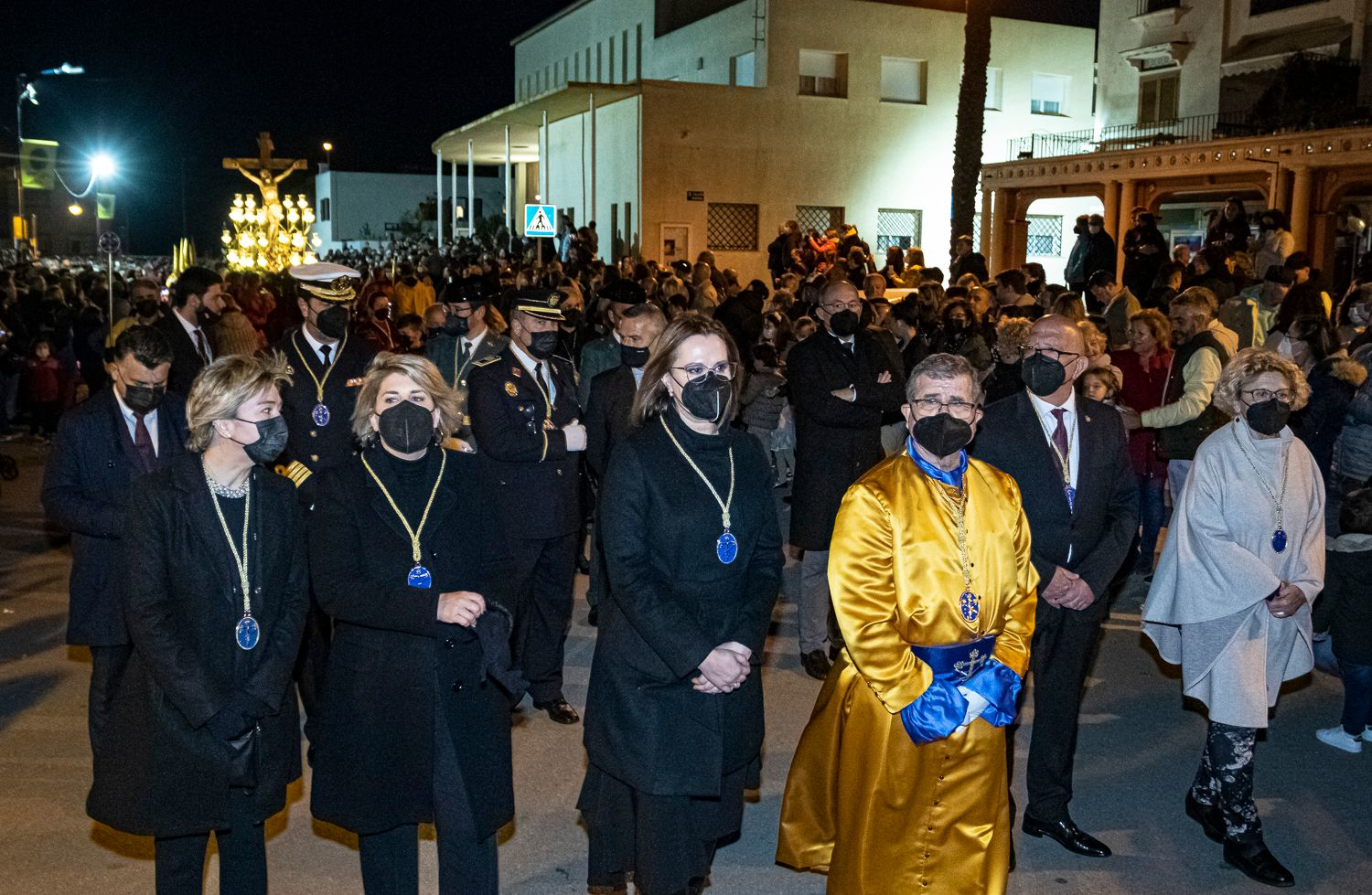 La vicepresidenta de la Región de Murcia, Isabel Franco, recibió en Cabo de Palos la medalla del Cristo de los Pescadores y fue nombrada Hermana de Honor del 'San Pedro'. El acto tuvo lugar la noche del Jueves Santo con su correspondiente procesión del Santísimo Cristo de los Pescadores hasta la lonja, donde tuvo lugar el encuentro entre 'La Virgen Dolorosa' y 'Jesús Nazareno'.