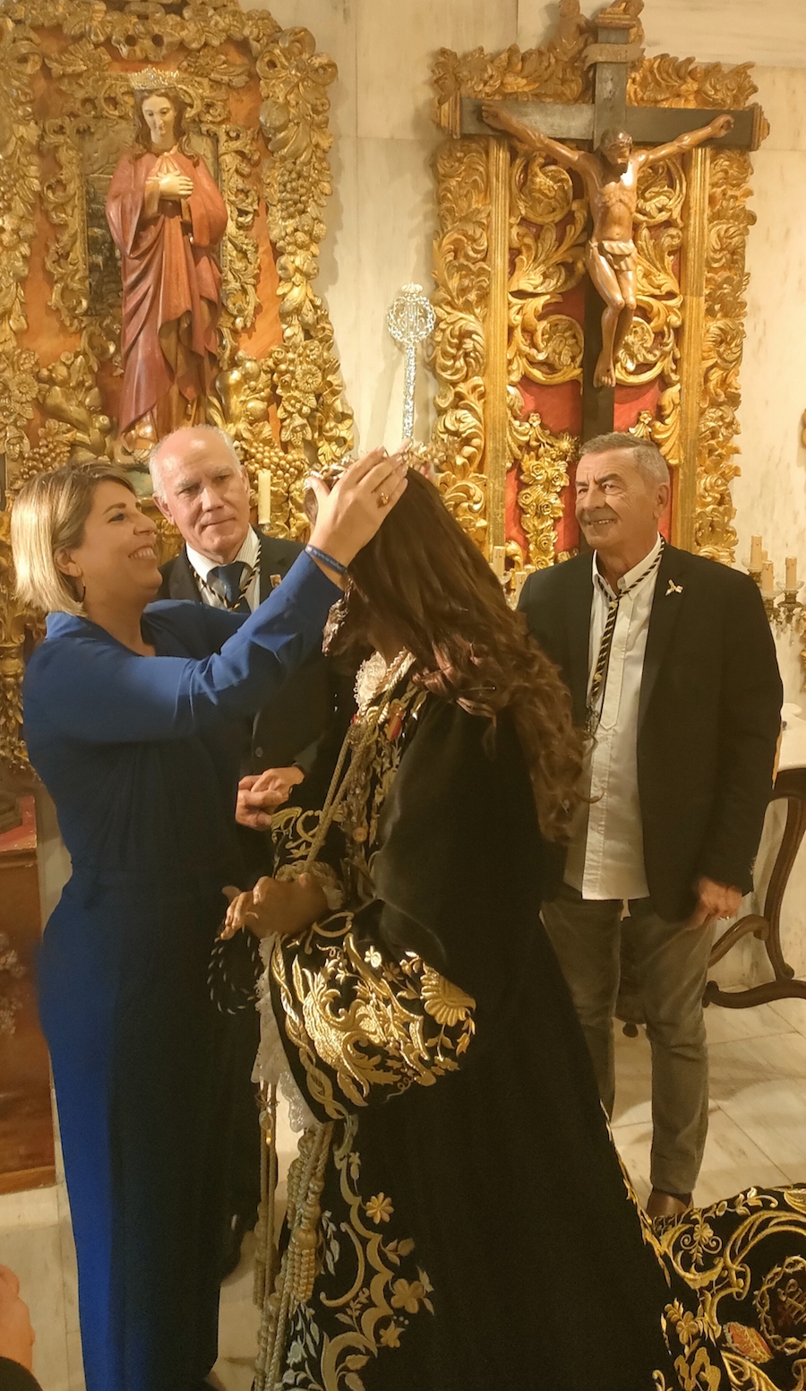 A su llegada, ha sido recibida por el presidente de la Asociación Canónica, Jose Felipe Rubio, y el Capellán, D. Pedro García León.Noelia Arroyo, ha quedado profundamente impresionada al observar de cerca la solemne talla de escultor Francisco Salzillo, mostrándose profundamente emocionada, al ser invitada por Felipe Rubio, a colocar sobre la cabeza de la talla, la corona de oro que le bendijo San Juan Pablo II.