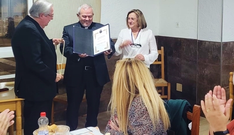 El párroco de San Ginés de la Jara (además de capellán de la hermandad de romeros del mismo nombre y de la Cofradía del Socorro de Cartagena y, entre otras funciones, director espiritual de varias agrupaciones californias) recibió el título de 'Hermano de honor' de la agrupación procesionista de la Semana Santa Minera.