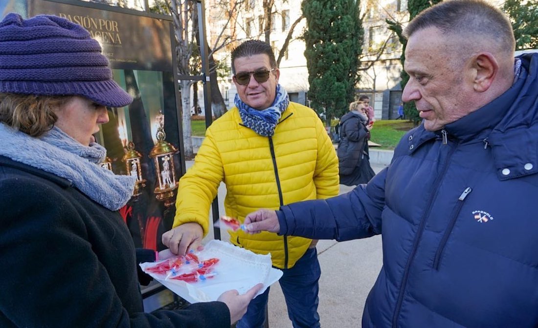 El tradicional caramelo de la Semana Santa de Cartagena fue distribuido en el área de las procesiones cartageneras en la presentación de las imágenes de las semanas pasionarias de cinco localidades de la Región de Murcia que se llevó a cabo en la zona de Colón, en el 'corazón' de la capital de España.