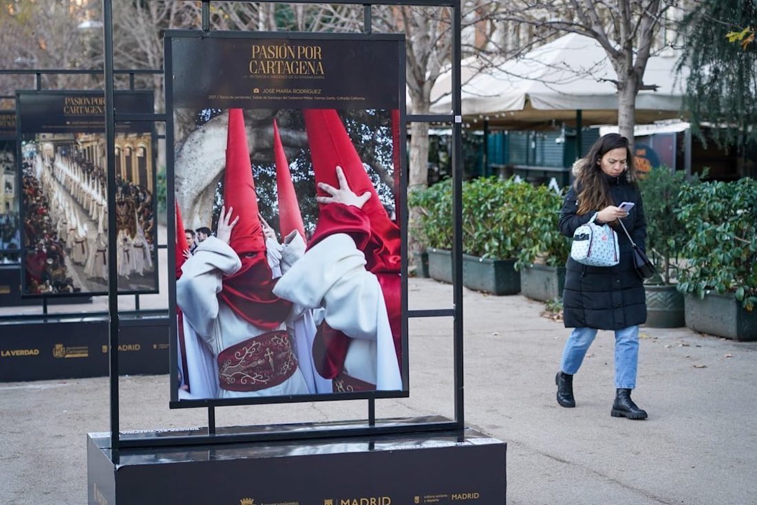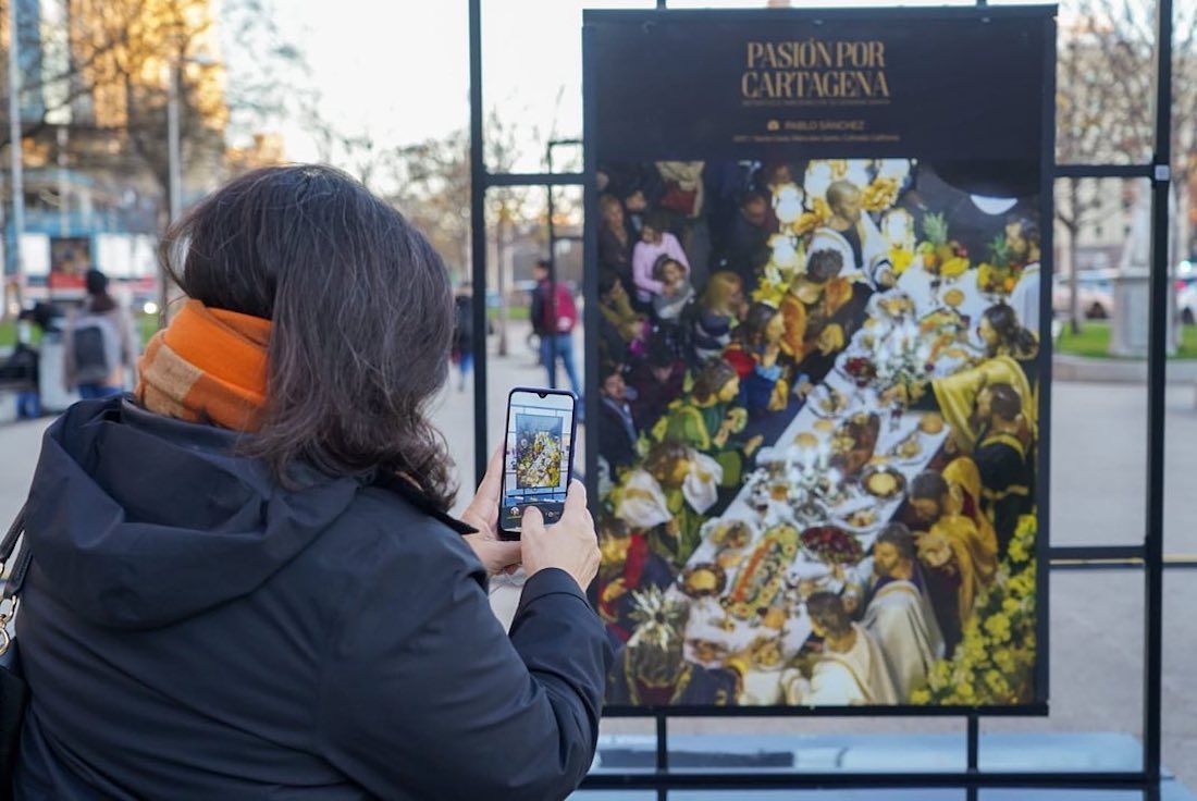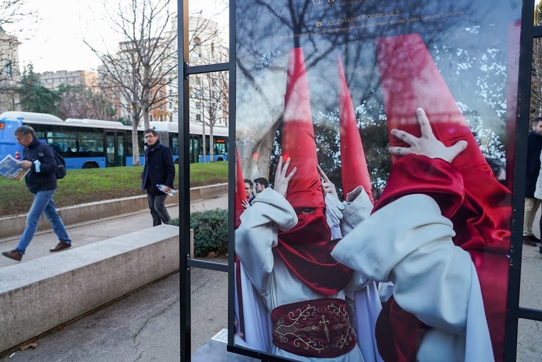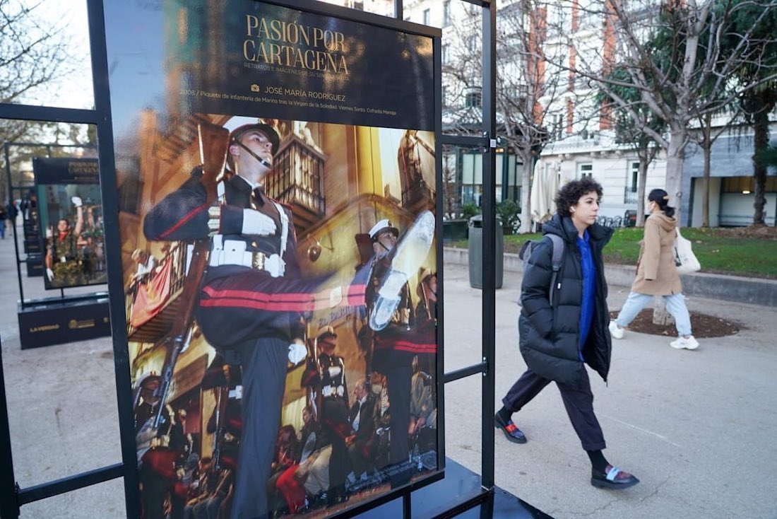 La exposición ‘Pasión por Cartagena. Retratos e imágenes de su Semana Santa’, se expone durante el mes de enero en el Paseo de Recoletos, en el centro de Madrid, en el marco de la Feria Internacional del Turismo, y ha sido presentada esta mañana por la alcaldesa, Noelia Arroyo, el director de La Verdad, Alberto Aguirre, y la presidenta de la Junta de Cofradías, Marien García.