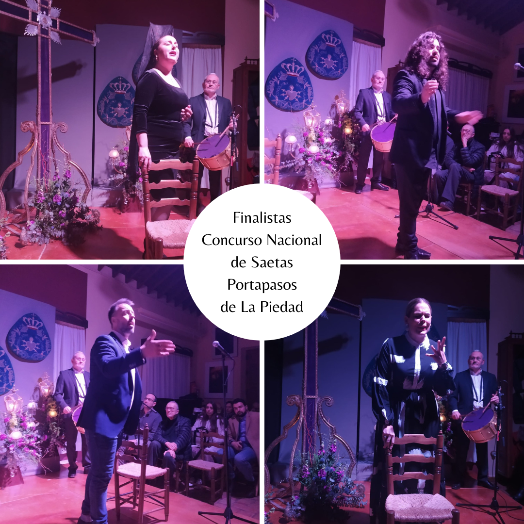 Los finalistas del certamen nacional de Cartagena 2023, que organiza la agrupación de Portapasos de la Virgen de la Piedad, son María Ángeles Cruzado, de Huelva; Ivan Segura Ruiz, de Alicante; Josefina Colmenero Escribano, de Jaén y Francisco Severo, de La Unión, tras la semifinal celebrado en la Casa del Folclore de La Palma. El próximo 18 de marzo se conocerá el nombre del ganador en la iglesia de Santa María de Gracia.