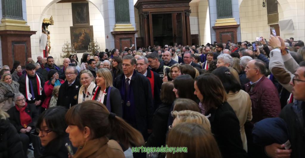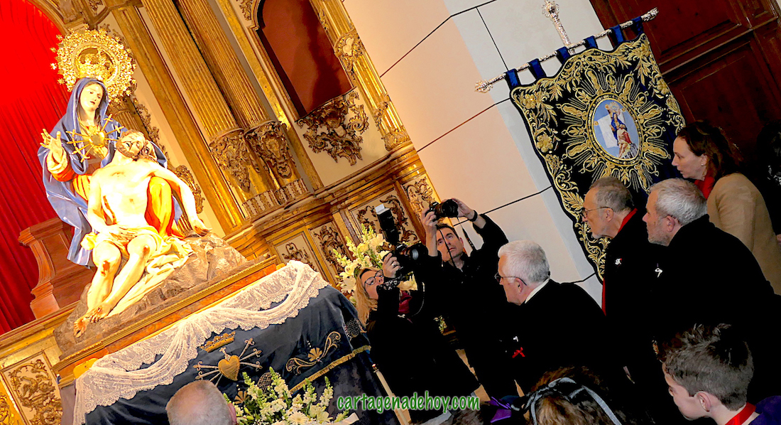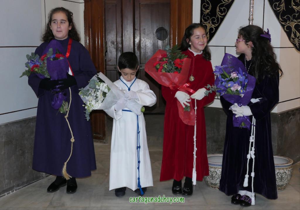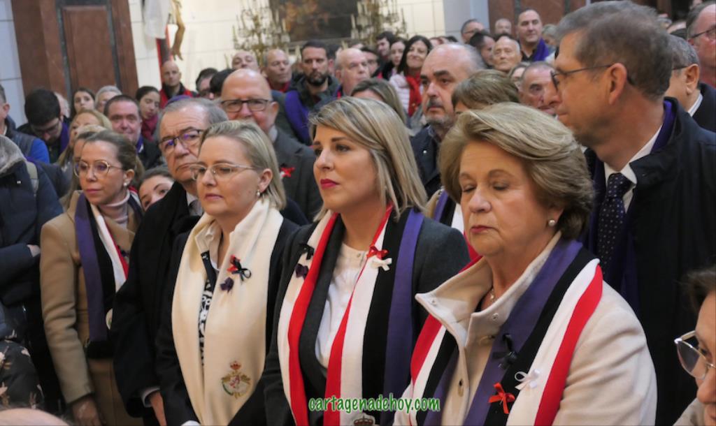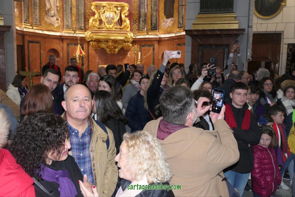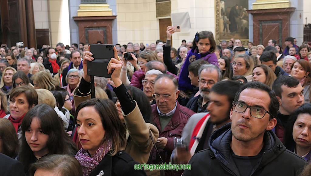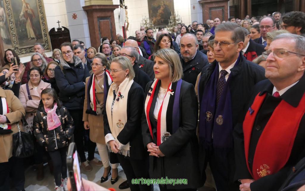 Después de unas palabras de Miguel Solana, en representación de los capellanes de las cuatro cofradías, ante la Virgen de la Caridad, que continúa en una capilla lateral de la basílica debido a las obras (avanzadas pero aún sin terminar), hubo una oración y ofrenda floral, culminando con el canto de la salve popular. Después, como ya es tradición también, numerosas fotos con el fondo de la patrona en una noche de felicidad procesionista, pues "Cartagena ya es Semana Santa", como proclamaban varios.