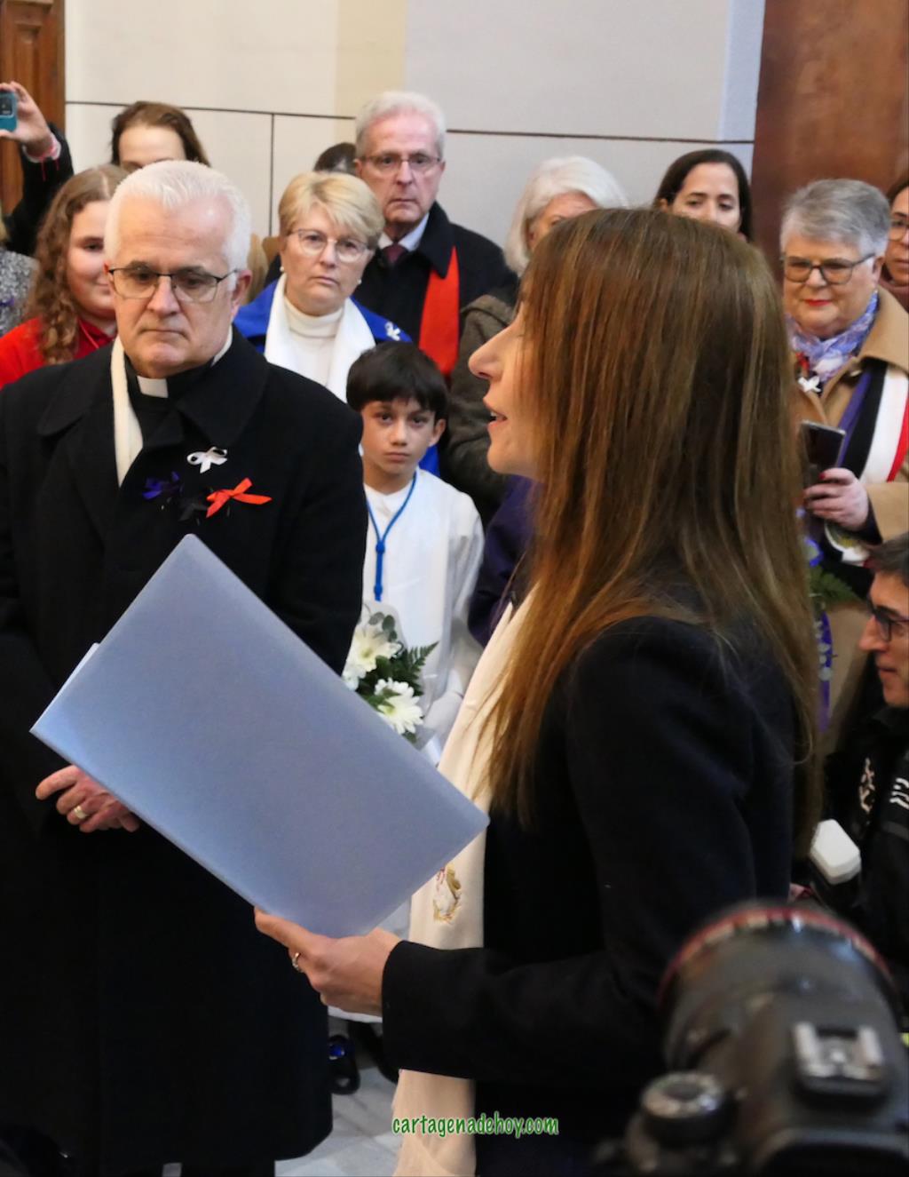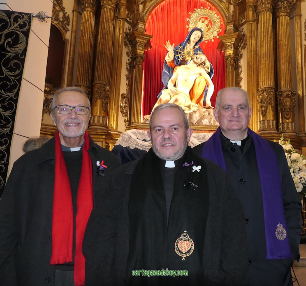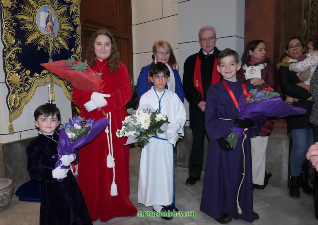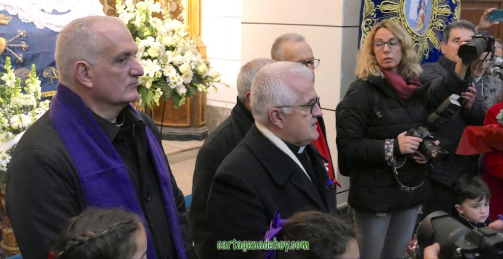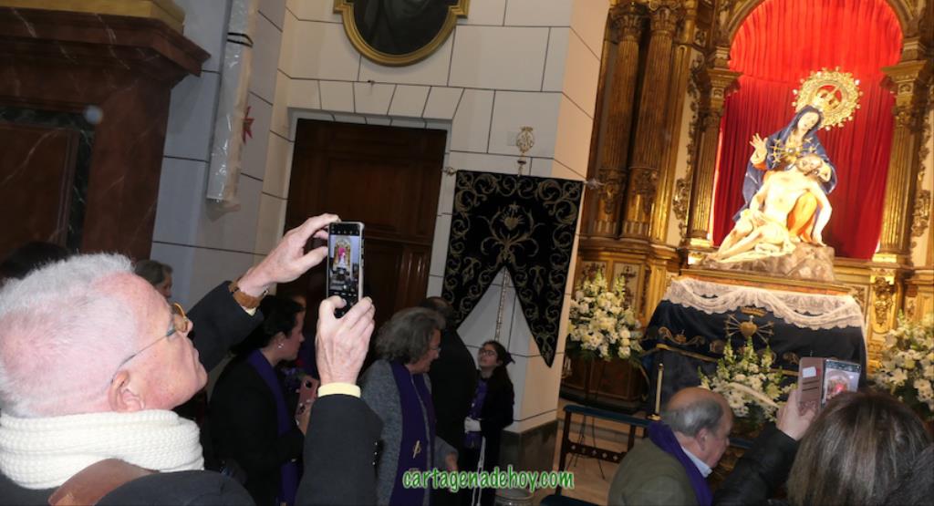 Después de unas palabras de Miguel Solana, en representación de los capellanes de las cuatro cofradías, ante la Virgen de la Caridad, que continúa en una capilla lateral de la basílica debido a las obras (avanzadas pero aún sin terminar), hubo una oración y ofrenda floral, culminando con el canto de la salve popular. Después, como ya es tradición también, numerosas fotos con el fondo de la patrona en una noche de felicidad procesionista, pues "Cartagena ya es Semana Santa", como proclamaban varios.