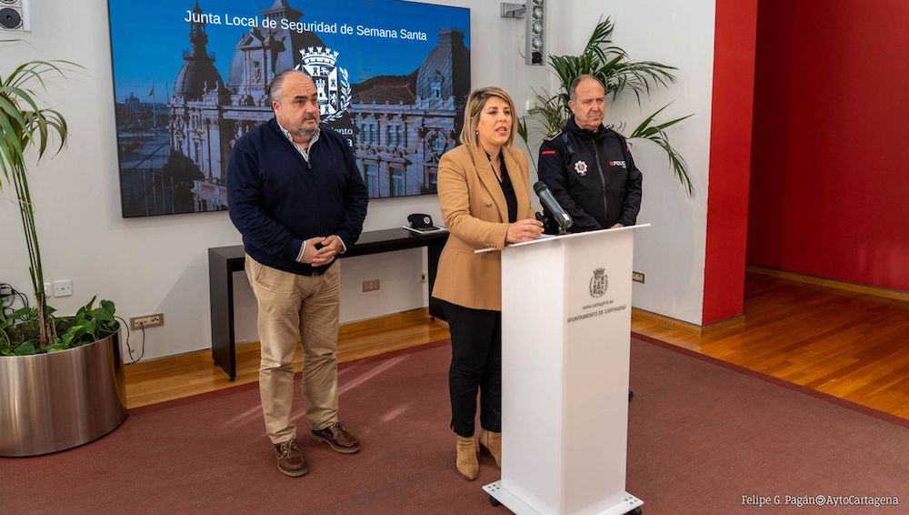 La alcaldesa ha presentado las mejoras en materia de seguridad que se aplicarán durante la 'Semana grande de Cartagena' tras la reunión de la Junta Local de Seguridad. "Dispondremos de casi cinco mil servicios adicionales entre Policía Local, Policía Nacional y Guardia Civil, ha indicado Noelia Arroyo.