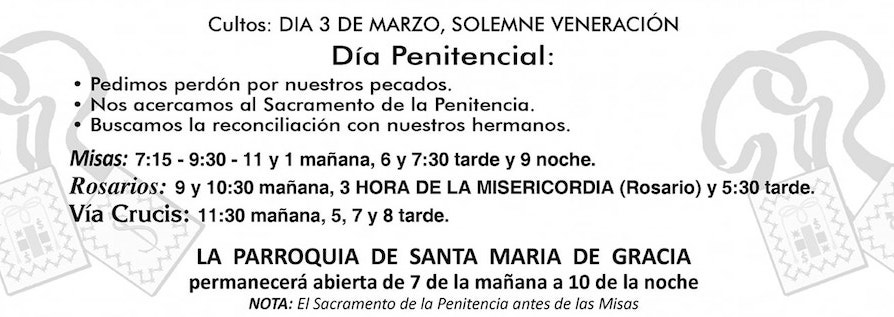 - Besapié al Cristo de la Divina Misericordia en la Basílica Menor de la Caridad, que estará abierta de 7 a 20.30 horas, con misas a las 10 y 19 horas.