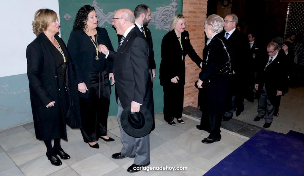 A las siete de la tarde ha comenzado el bullicio ‘resucitado’ por el casco histórico con la agrupación de Escoltas y Honores, con sus uniformes de gala de la caballería de Alfonso XIII, anunciando la celebración del principal acto litúrgico de cuaresma de la Cofradía de Jesús Resucitado. Pasadas las ocho y media ha llegado ante la puerta de la iglesia de Santa María, donde se han presentado ante la hermana mayor, Marién García Boj, quien instantes después ha comenzado a recibir, junto a representantes de su junta de mesa, al elenco de invitados, con amplia representación de la sociedad institucional, militar y procesionista.