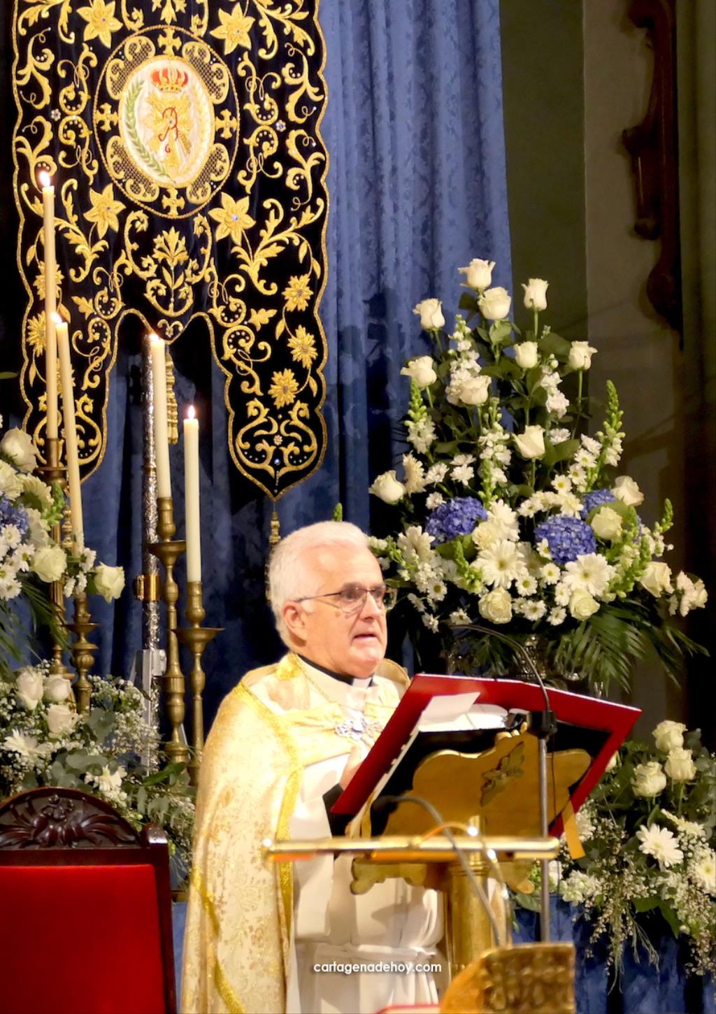 Ha continuado indicando que las cofradías "sois una parte del cuerpo de Cristo" y que una cofradía "debe ser un pueblo para caminar juntos, sin rivalidades, como hermanos". También se ha referido a los dos maderos que se cruzan en la cruz. "El horizontal es nuestra vida humana y el vertical es un travesaño que parte del suelo hacia el cielo. También hay que mirar hacia el cielo".