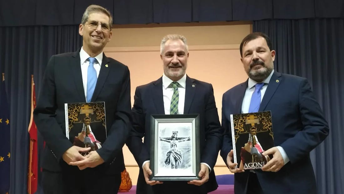 Enrique Soler Martínez ha presentado en el colegio Patronato del Sagrado Corazón de Jesús la publicación de esta Semana Santa de la agrupación marraja de la Santa Agonía, Vera Cruz y Condena de Jesus. El presentador estuvo acompañado en la mesa por el presidente de la agrupación, Agustín Alcaraz, y por el hermano mayor de la Cofradía del Nazareno, Francisco Pagán.