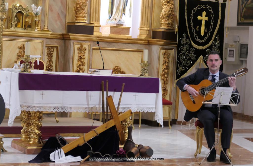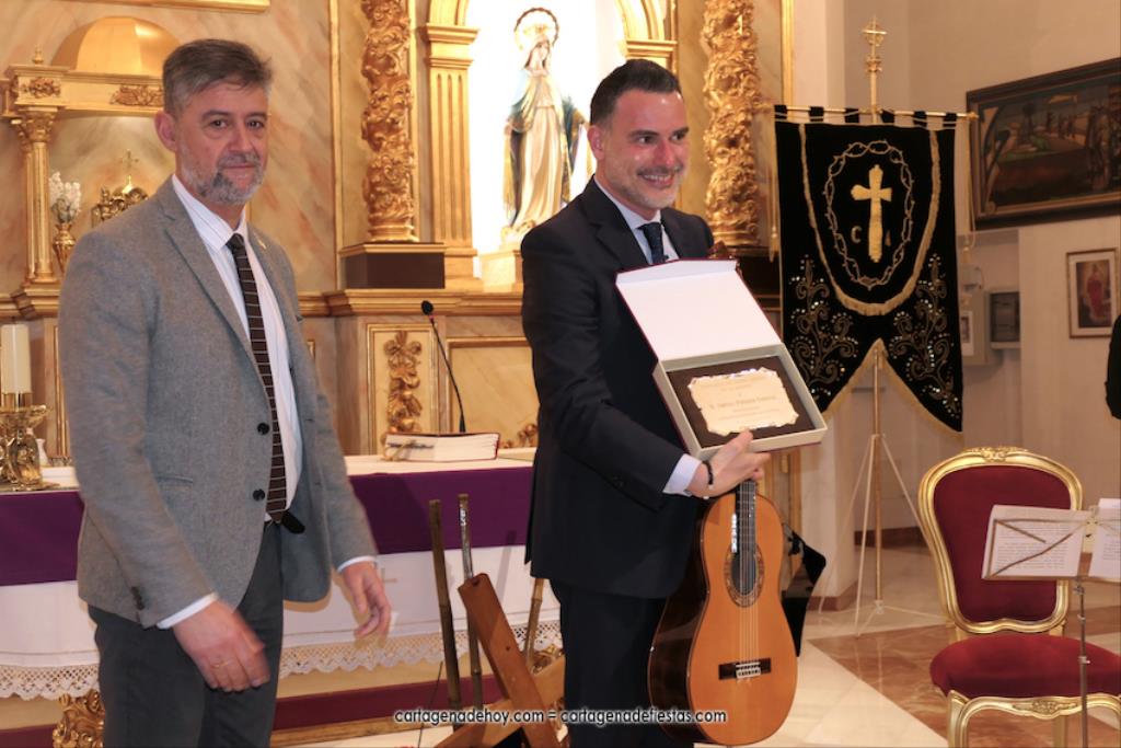 El siguiente capítulo fue para el pregonero, el concejal y guitarrista (o viceversa) Carlos Piñana, que fue jalonando sus palabras con temas instrumentales que cautivaron a los presentes. "He venido a pregonar a los cuatro vientos que la Semana Santa de La Puebla echa a andar", avanzó, para después definirla con tres calificativos: "Historia, fe y tradición". Con otro tema musical expresó lo que simboliza la Virgen y enriqueció su propuesta pregonera con dos brillantes saetas de Loli Díaz 'La mojaquera'. Tras un recuerdo a los cofrades locales que han trabajado por la Semana Santa "y nos han dejado en este tiempo", cerró su intervención con vivas al Cristo de la Agonía, a la Virgen de la Soledad y a la Semana Santa de La Puebla.