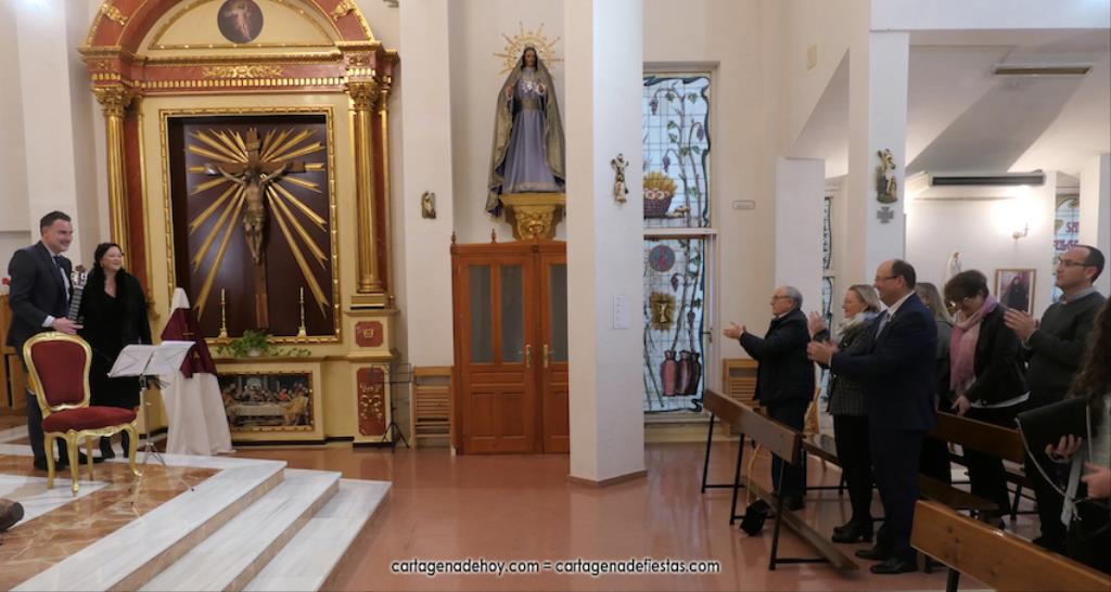 José Fernández León, como hermano mayor de la Cofradía del Cristo de la Agonía, fue quien en primer lugar se dirigió a los asistentes, entre los que figuraban los presidentes de la Junta Vecinal Municipal y de la Asociación de Vecinos, además de la presidenta de la Junta de Cofradías de la Semana Santa de Cartagena y hermana mayor de la Cofradía del Resucitado, Marién García Boj.