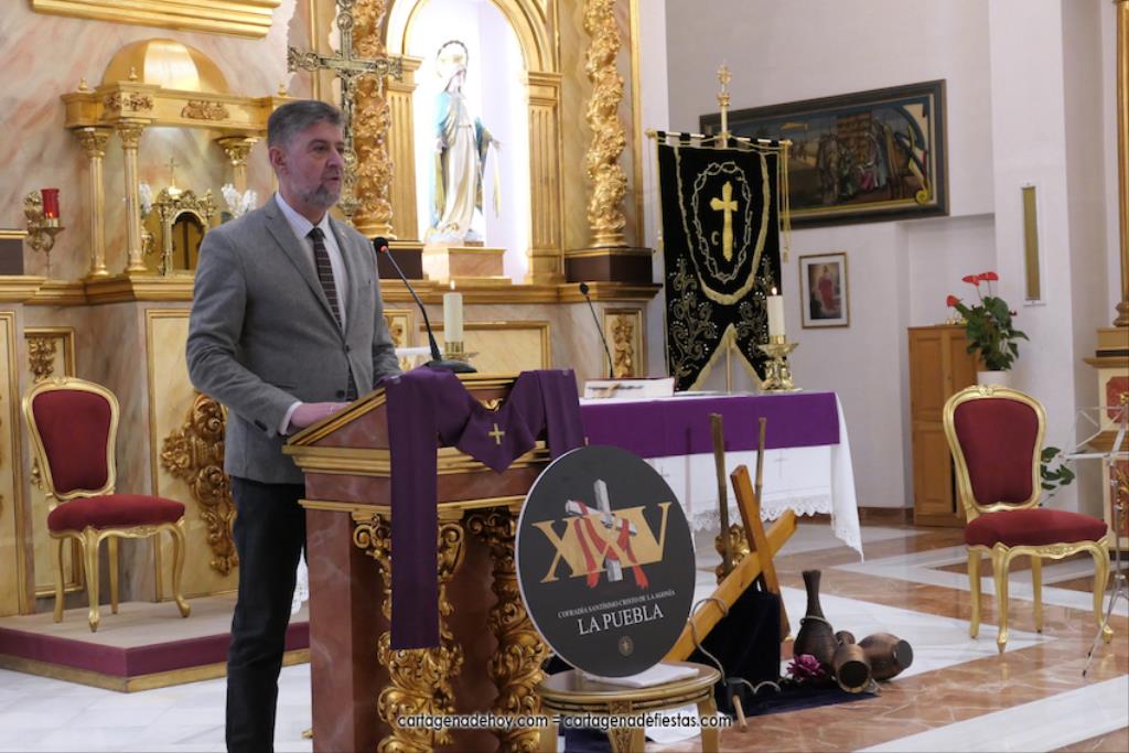 La Semana Santa de La Puebla vivió su principal jornada de cuaresma, que comenzó con la celebración de una eucaristía oficiada por el párroco, Pedro García Casas, para después tener lugar el pregón y la presentación del cartel oficial de 2023.