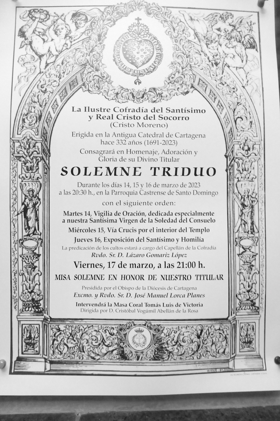 La Ilustre Cofradía del Santísimo y Real Cristo del Socorro celebrará a partir del martes proximo el triduo en honor a su imagen titular en la parroquia de Santo Domingo.