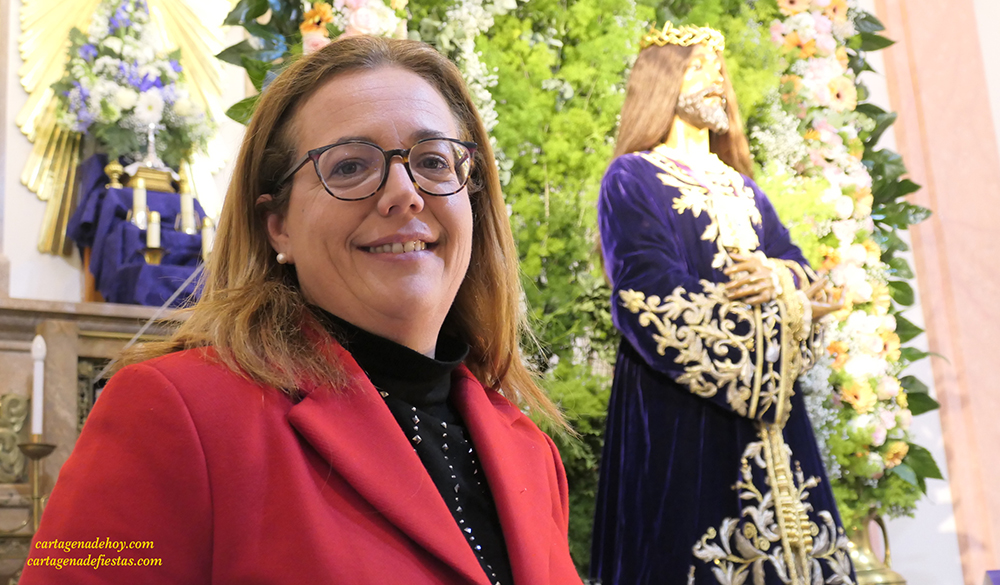 El colectivo marrajo, que abarca al Cristo de Medinaceli y a las Santas Mujeres, celebrará el aniversario esta cuaresma con un documental que recoge testimonios de hermanos del grupo, la exposición de fotos históricos en comercios de Cartagena y con un concierto en el que se estrenarán dos nuevas marchas, además de restaurar el 'Lignum Crucis'. En la imagen, su presidenta, Margarita Carrillo García.