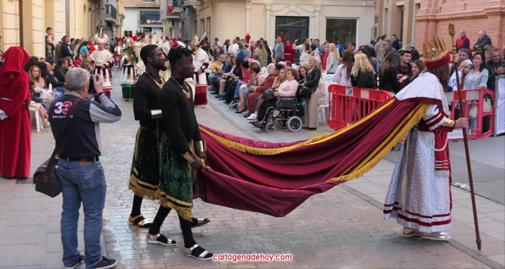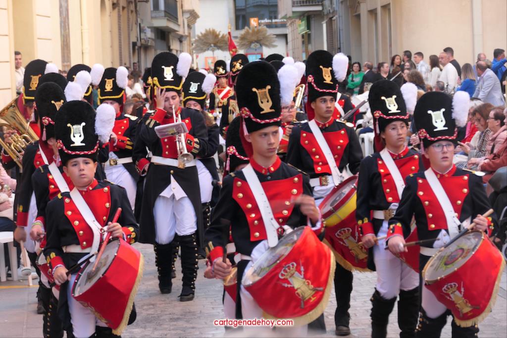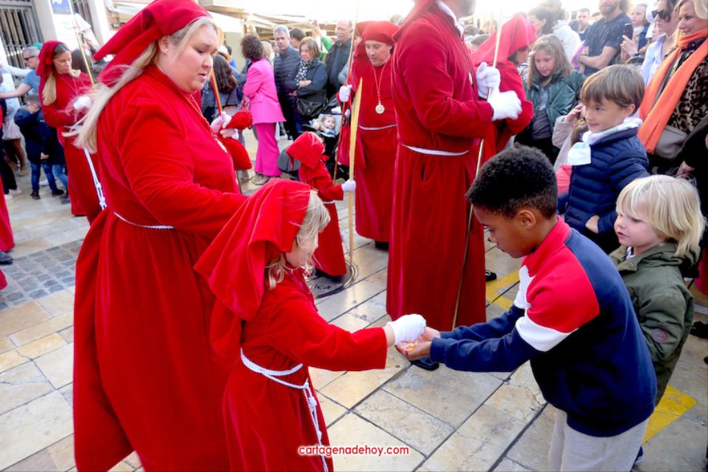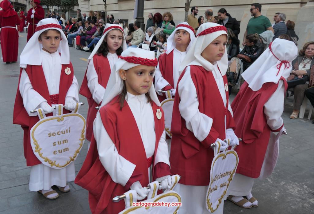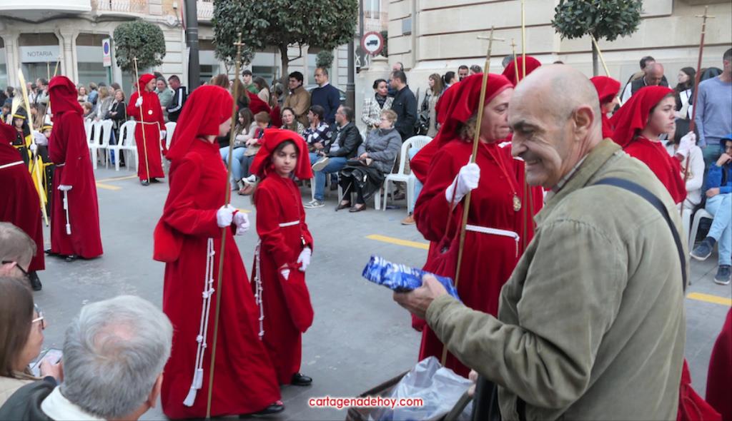 Alicientes, además del perfecto y cautivador orden de los chavales, han sido bastantes, como los dos equipos de portapasos juveniles masculino ('La imposición del primado' y 'El sermón de la montaña') y uno femenino con la Samaritana. Destacare los momentos en que las peanas han sido elevadas por sus costaleros al cruzar ante la puerta de la patrona, la Virgen de la Caridad. También hay que destacar el cierre de los granaderos, cuyo tercio infantil ha abierto la procesión y el adulto la ha cerrado, con el grupo de honores poniendo grandes dosis de espectáculo con el fusil.