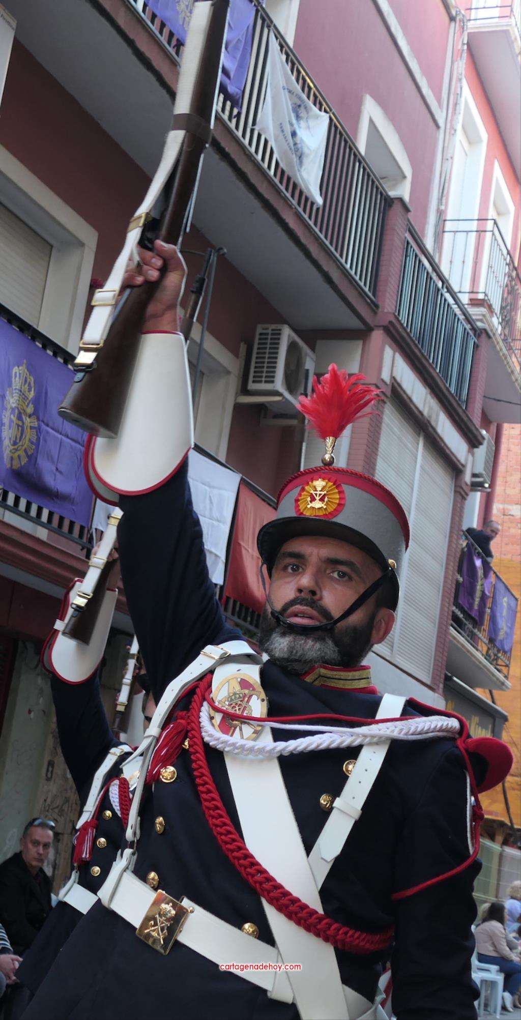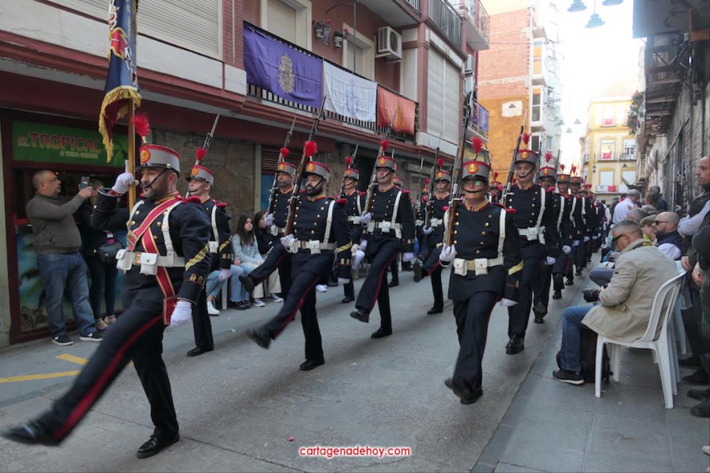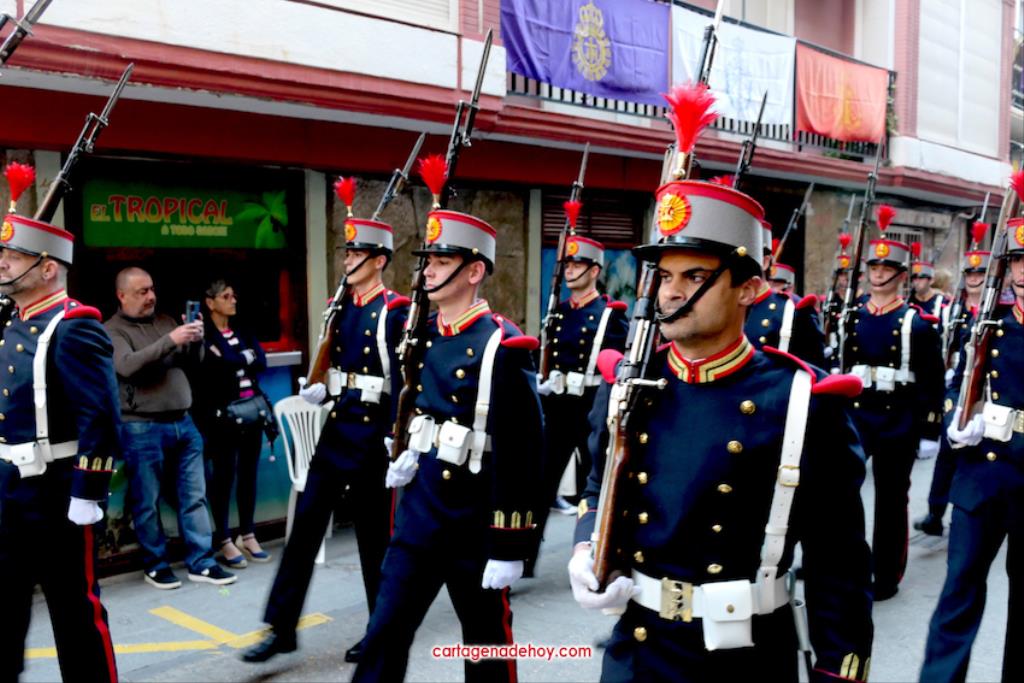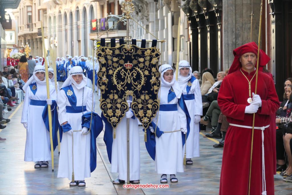 Alicientes, además del perfecto y cautivador orden de los chavales, han sido bastantes, como los dos equipos de portapasos juveniles masculino ('La imposición del primado' y 'El sermón de la montaña') y uno femenino con la Samaritana. Destacare los momentos en que las peanas han sido elevadas por sus costaleros al cruzar ante la puerta de la patrona, la Virgen de la Caridad. También hay que destacar el cierre de los granaderos, cuyo tercio infantil ha abierto la procesión y el adulto la ha cerrado, con el grupo de honores poniendo grandes dosis de espectáculo con el fusil.