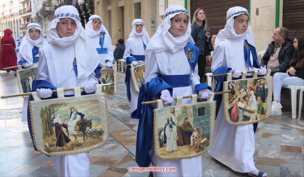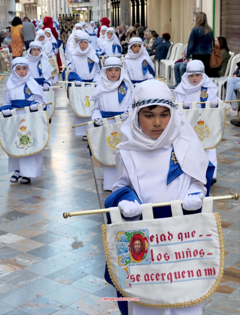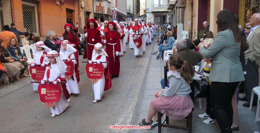 Este desfile surgió en 1944 y desde 1952 es exclusivamente infantil, siendo conocido como 'la procesión de la burrica' al ser el trono que, dentro del tercio sanjuanista, lleva a Jesús sobre este animal el que cierra.