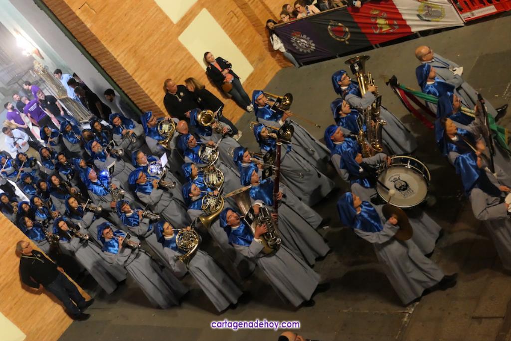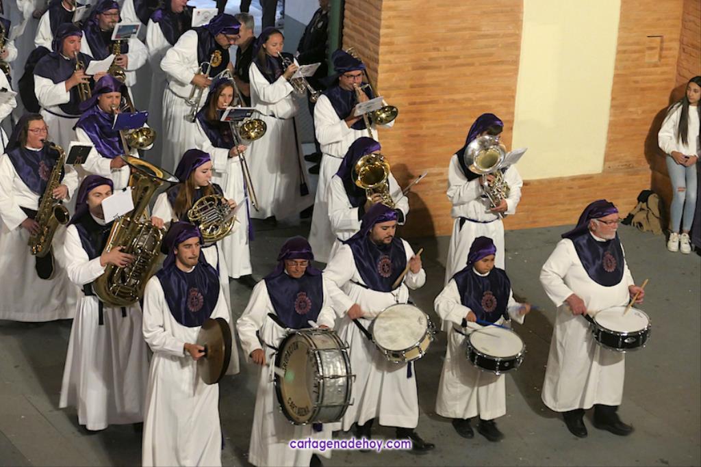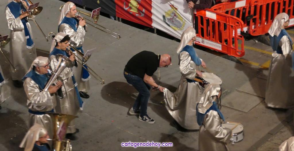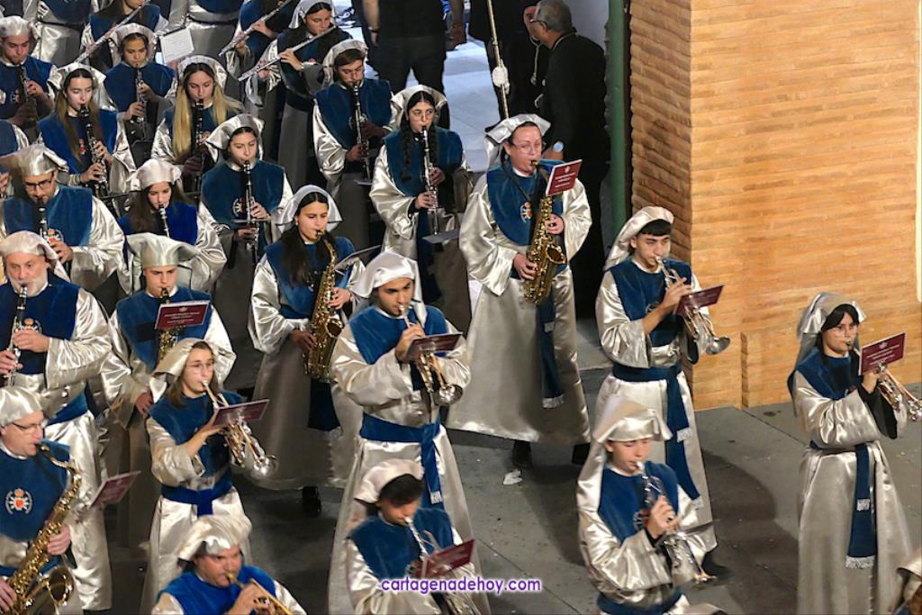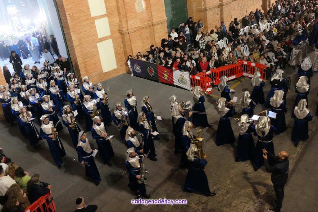 La cifra total bien podría estar próxima a las tres mil promesas, con lo que sería una casi similar a todos los que han formado parte del cortejo marrajo de anoche, de los que unos dos mil son nazarenos. Otros integrantes importantes del cortejo son las bandas de música, todas cartageneras: Nuestra Señora de la Soledad de Molinos Marfagones, Santa Cecilia de Pozo Estrecho y Sauces de la barriada del mismo nombre de la ciudad, que era la que estaba junto al trono de la Virgen y que en su marcha han ido interpretando los temas 'Plegaria', 'Al cielo con ella' y 'Caridad chica'.