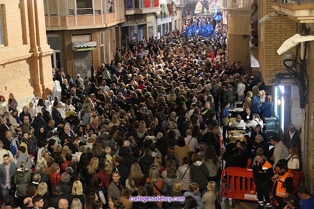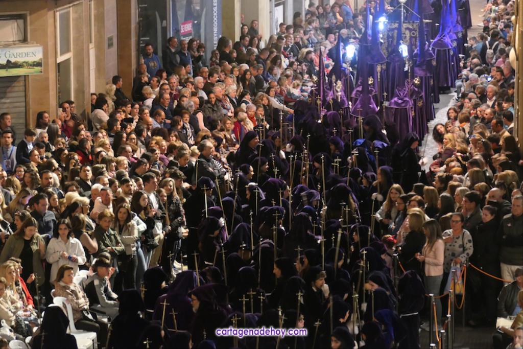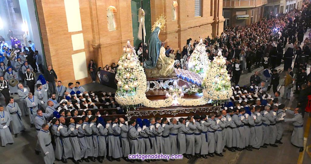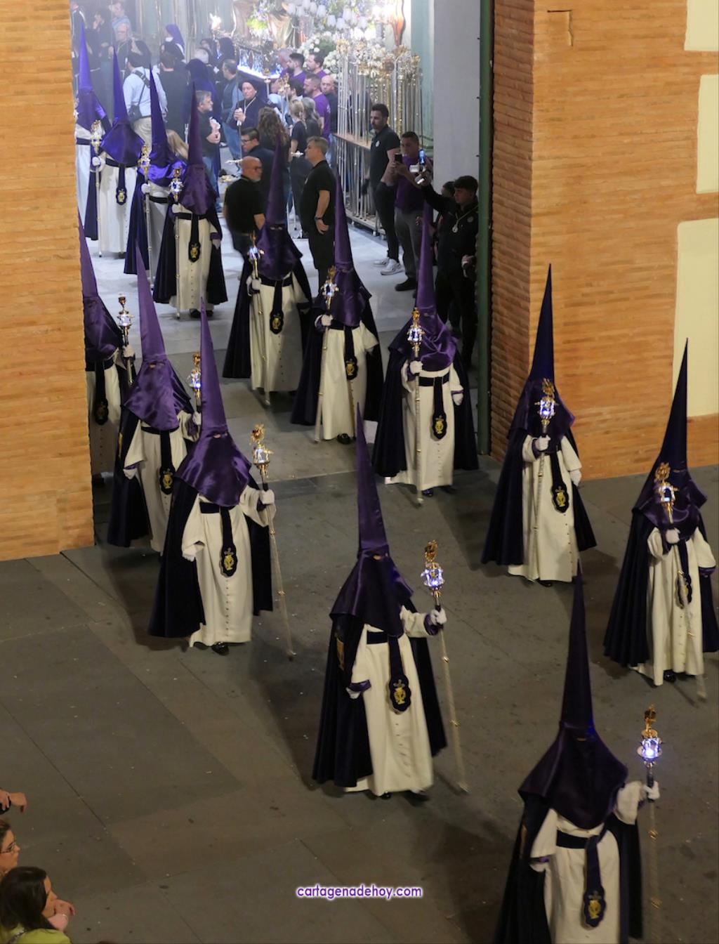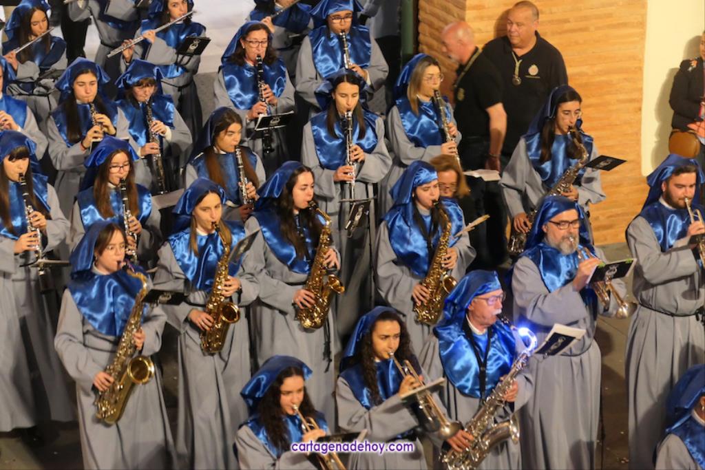 La cifra total bien podría estar próxima a las tres mil promesas, con lo que sería una casi similar a todos los que han formado parte del cortejo marrajo de anoche, de los que unos dos mil son nazarenos. Otros integrantes importantes del cortejo son las bandas de música, todas cartageneras: Nuestra Señora de la Soledad de Molinos Marfagones, Santa Cecilia de Pozo Estrecho y Sauces de la barriada del mismo nombre de la ciudad, que era la que estaba junto al trono de la Virgen y que en su marcha han ido interpretando los temas 'Plegaria', 'Al cielo con ella' y 'Caridad chica'.
