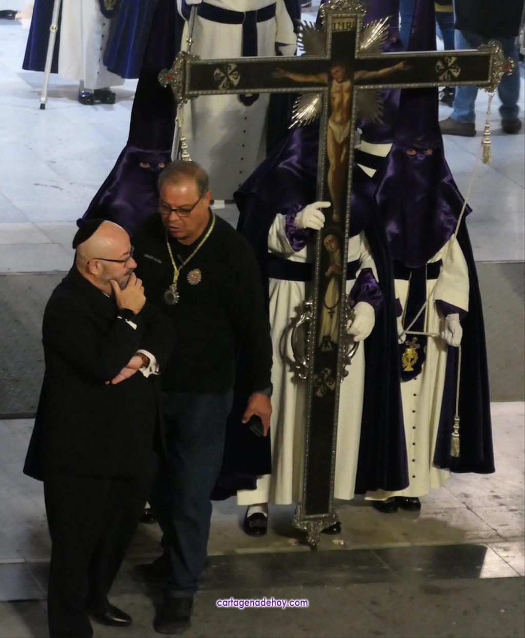 Más apuntes. El trono de La Piedad ha llevado la placa en reconocimiento y recuerdo a la figura de José Luis Mendoza, fundador de la UCAM y devoto de esta Virgen marraja. En la procesión participó su hijo David como portapasos, y su esposa María Dolores García, presidenta de la Universidad Católica de Murcia, y su hermano Vicente, realizaron la ofrenda floral a la Virgen de la Caridad, patrona de Cartagena.