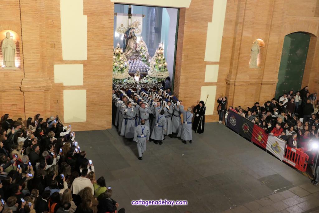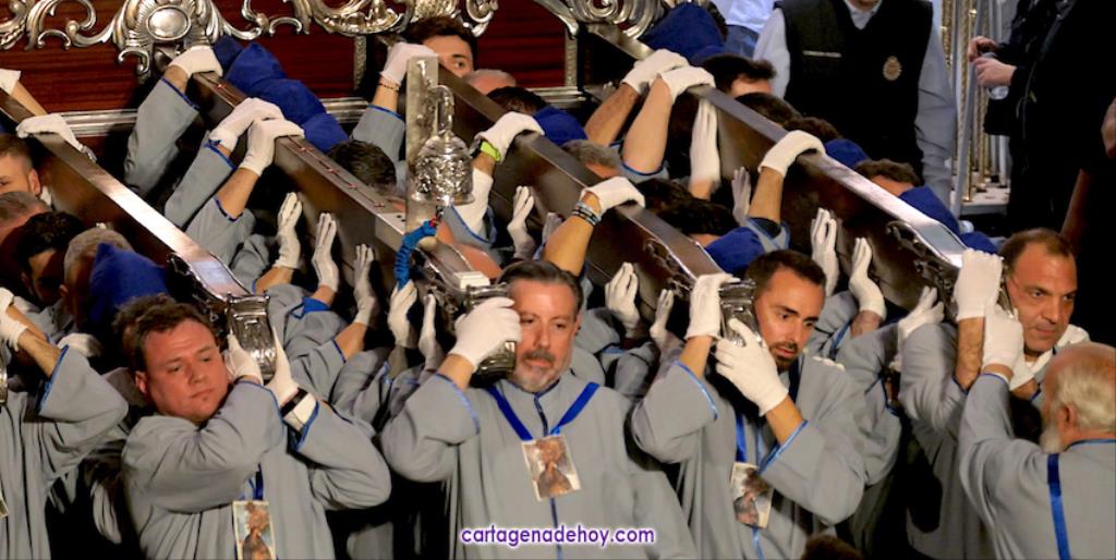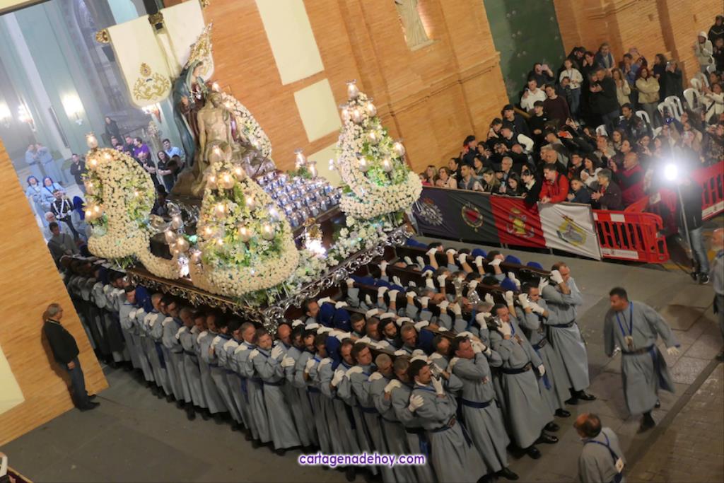 - Trono de la Virgen de la Piedad sobre hombros de la agrupación de portapasos