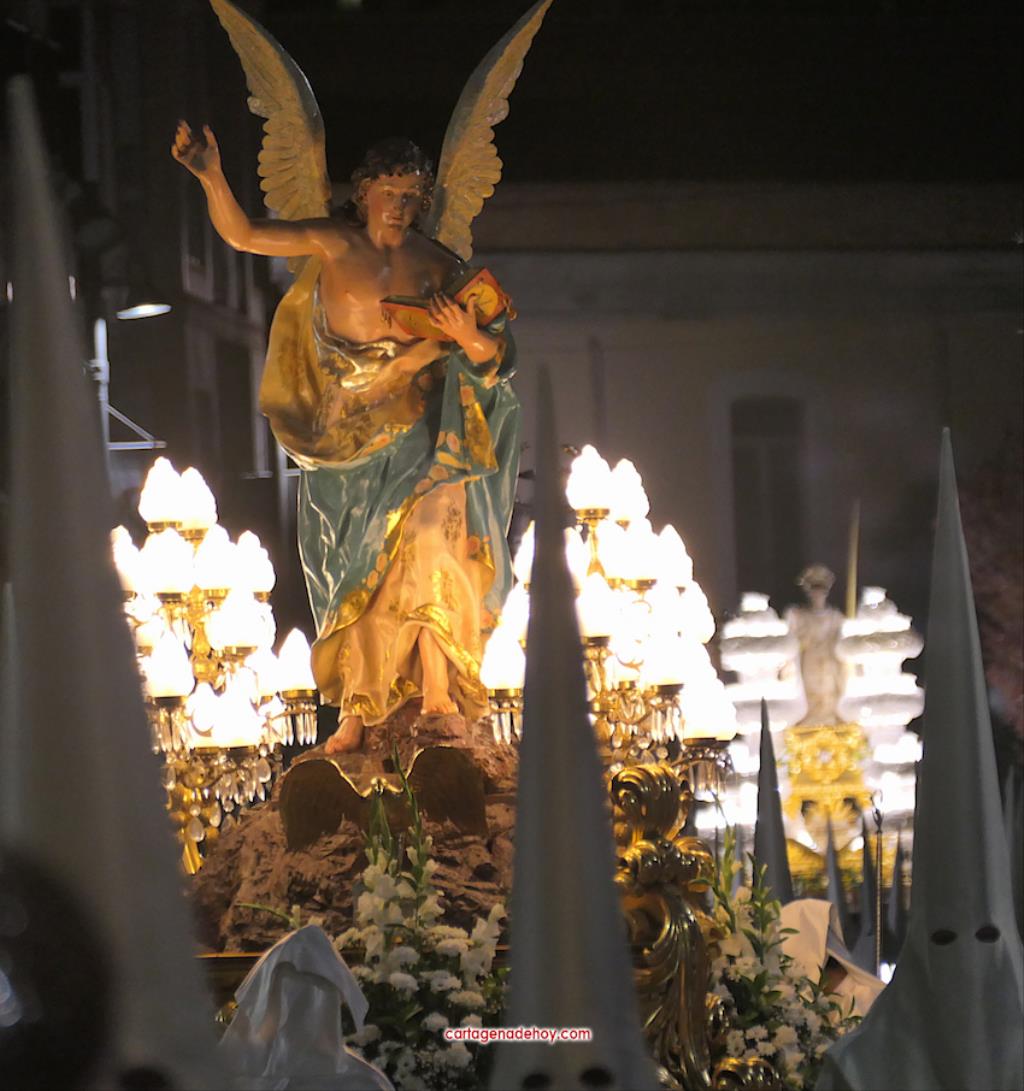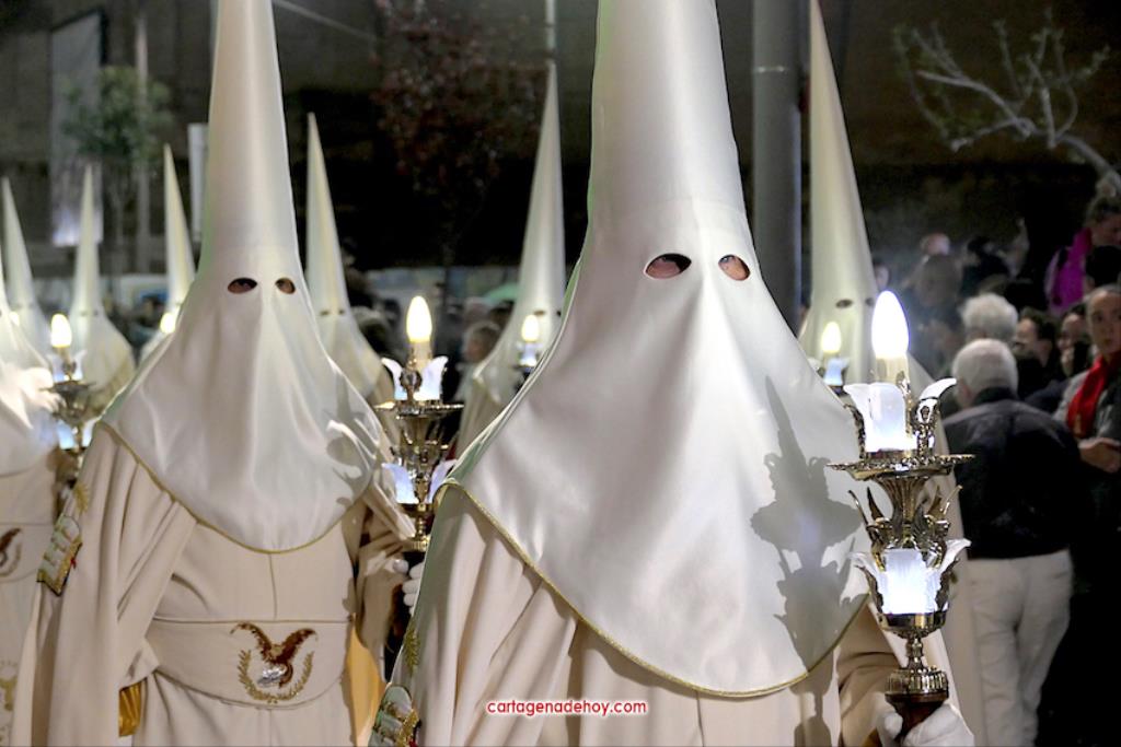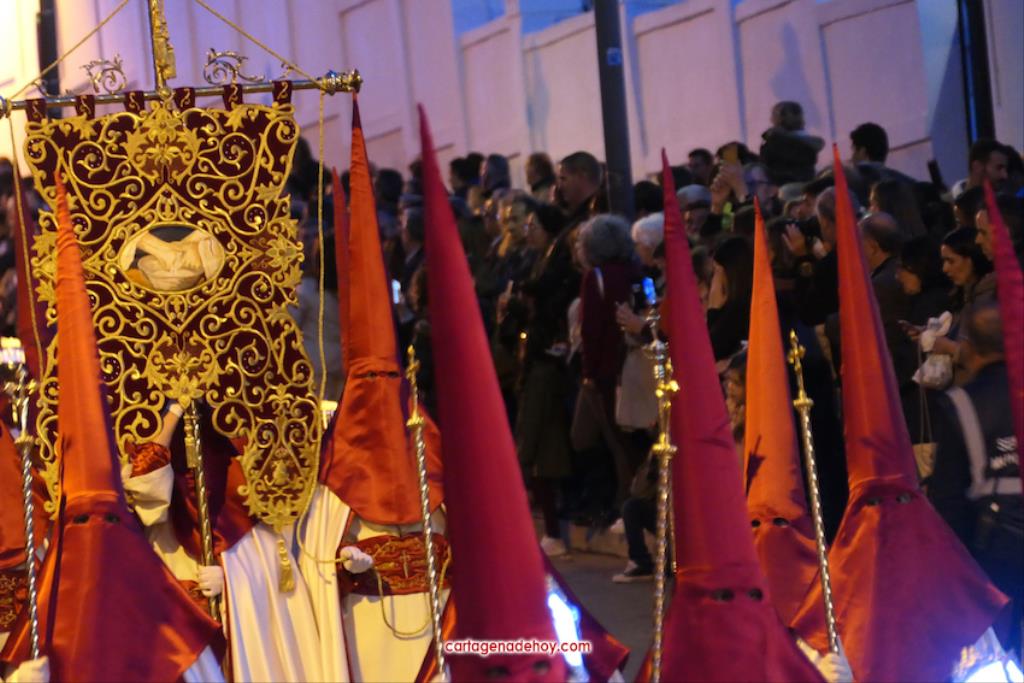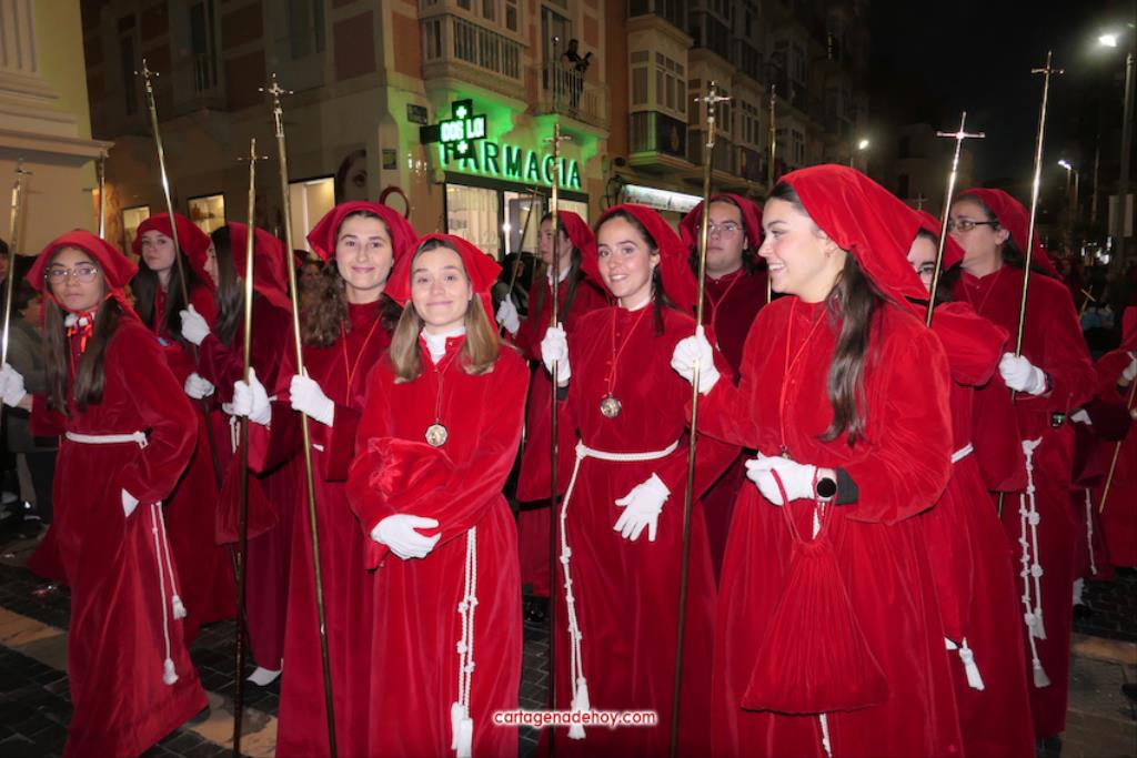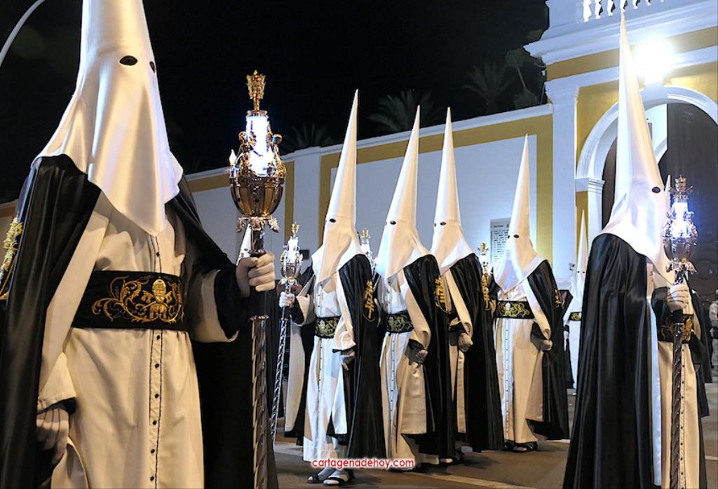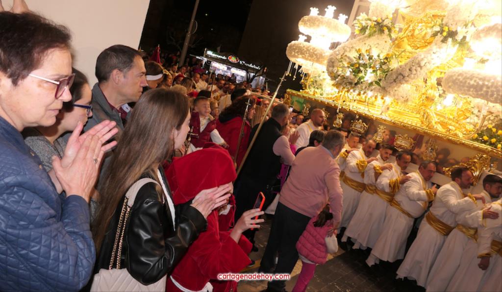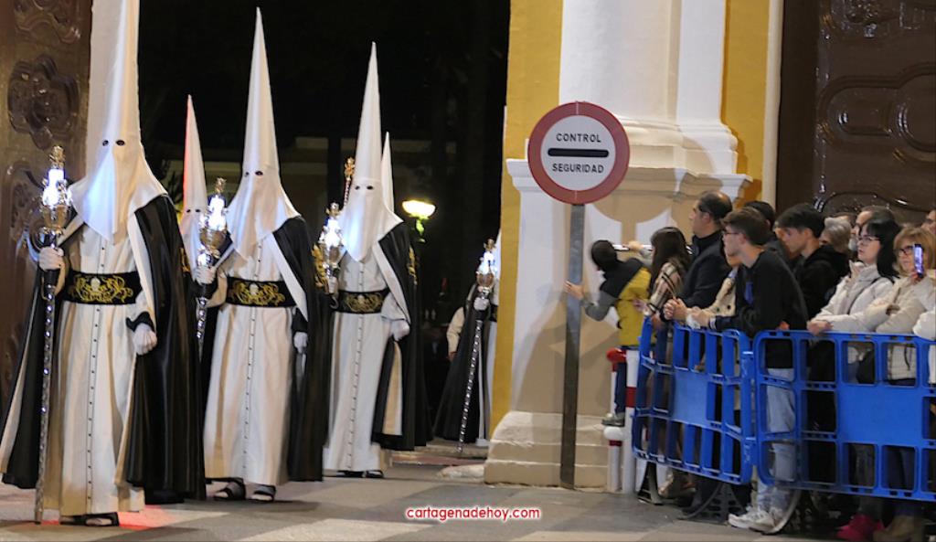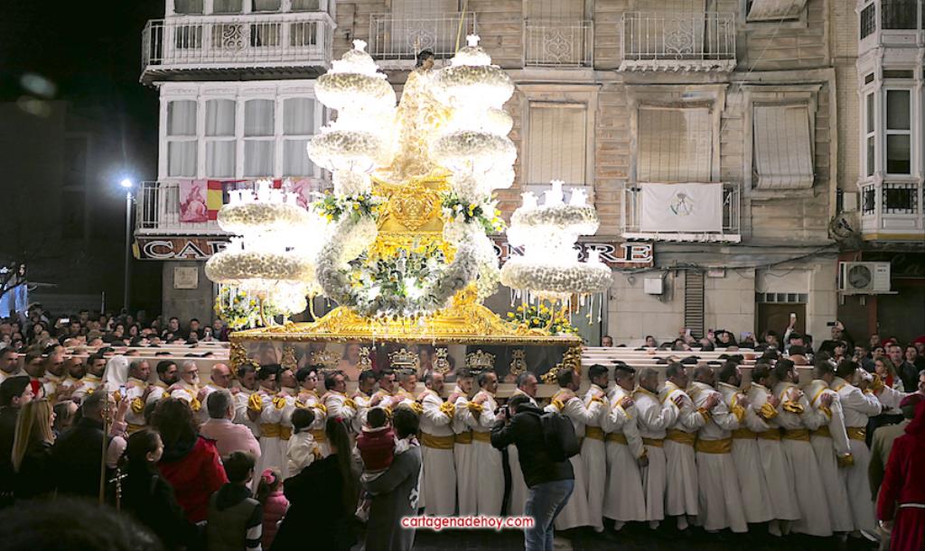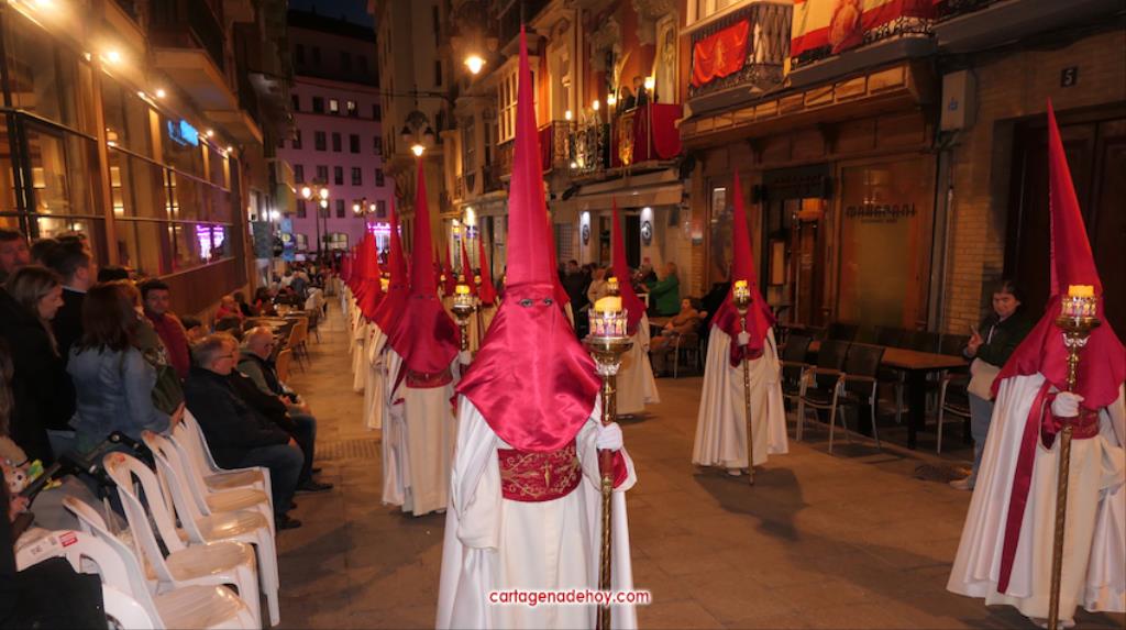 De misión en misión. Unos eligen la salida del San Juan, otros la de Santiago y muchos la de San Pedro, pero también hay quienes intentan estar en todas y los que combinan una salida con otros momentos especiales, como cuando Pedro Marina Cartagena (el nombre del DNI de quien fue el primer Papa) cruza el pórtico del Arsenal, como ver y escuchar a los portapasos santiaguistas cruzar la calle Mayor sin poner el trono en el suelo con su peculiar ‘grito de guerra’ (“¿De quién es la calle Mayor?, ¡Del Santiago!”) o cuando la punta de las varas del trono del Discípulo Amado se meten en la entrada de la Real Basílica Menor de la Virgen de la Caridad. Luego, gran parte coincide en no perderse las recogidas de las tres formaciones en Santa María. Es noche de trasiegos, diferente a las habituales de la Cartagena semanasantera, pero también cargada de emociones y alicientes.
