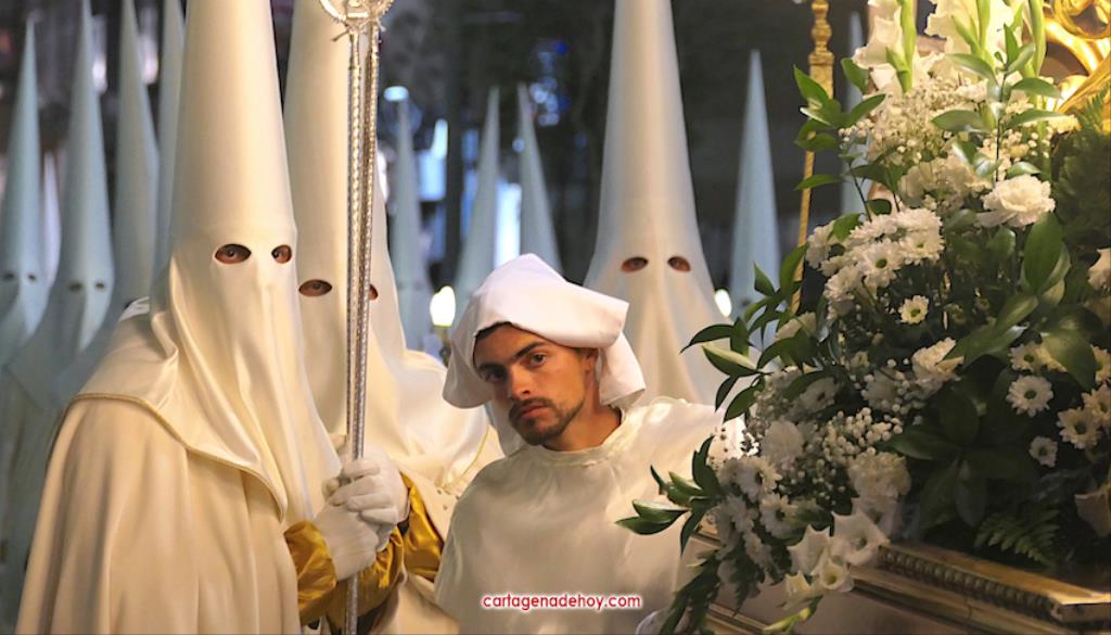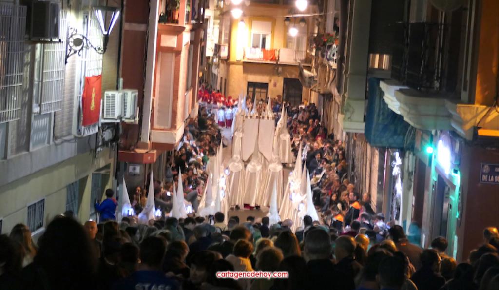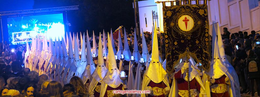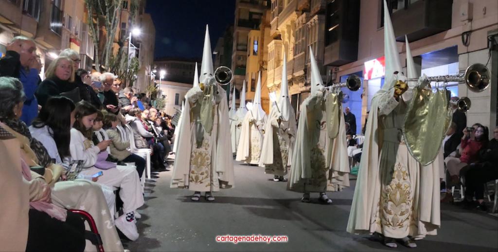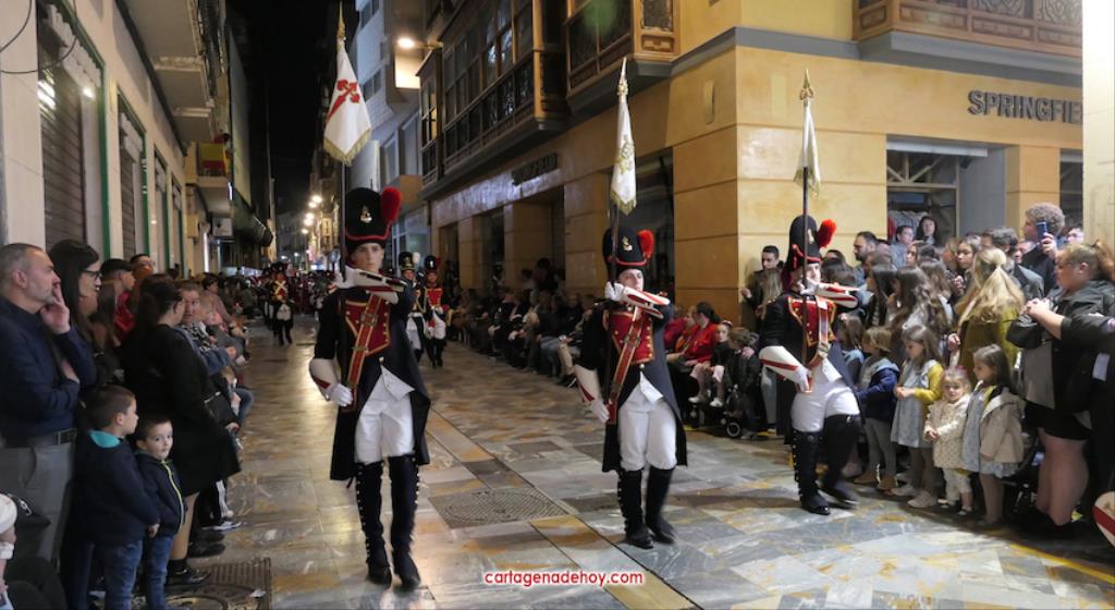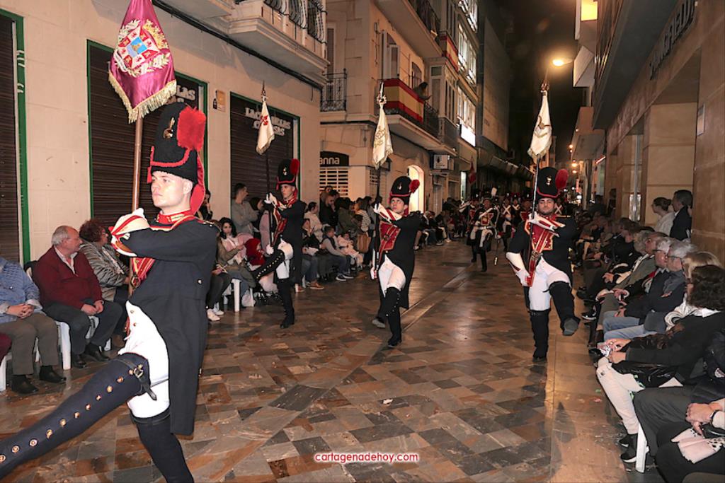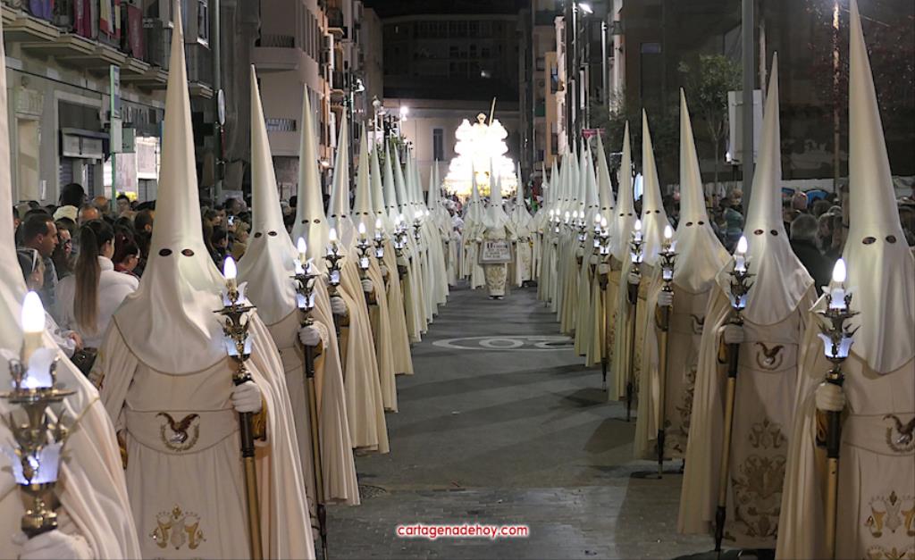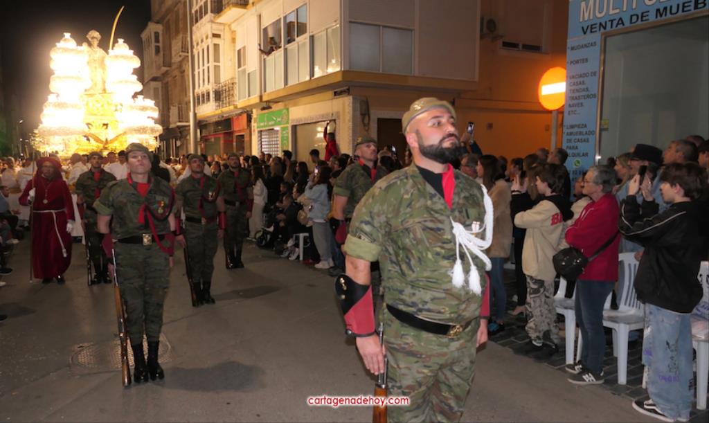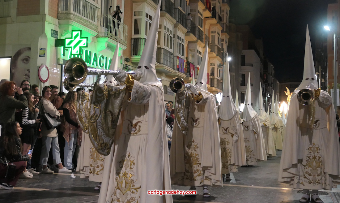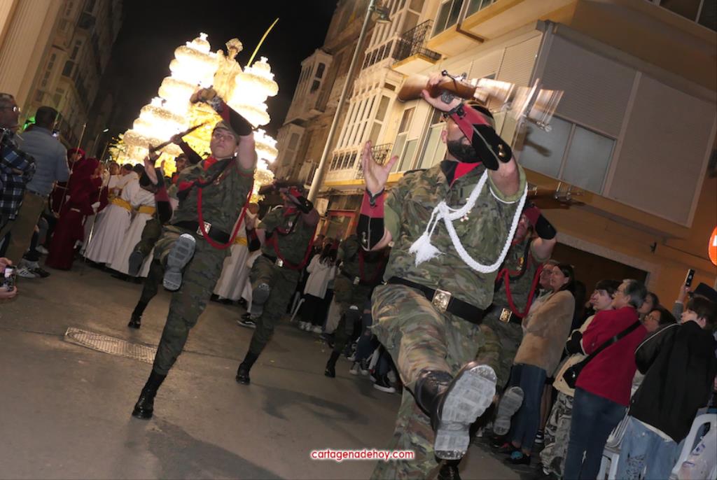 Las imágenes y sus portapasos se han llevado muchos aplausos, pero también el buen orden de los tercios, la marcialidad de los piquetes y escenas más concretas, como cuando cuatro penitentes sanjuanistas hacían sonar su grandes trompetas. En definitiva, una brillante noche procesionista y militar de luna casi llena con circunstancias paralelas que ratifican que ha sido un éxito, como muchos espectadores al paso de las procesiones, miles (millones quizás) de fotos tomadas con los móviles, las terrazas y bares a tope, caos en el tráfico urbano… Vamos, lo normal y que sólo se da cuando muchas almas confluyen dentro de la Trimilenaria.