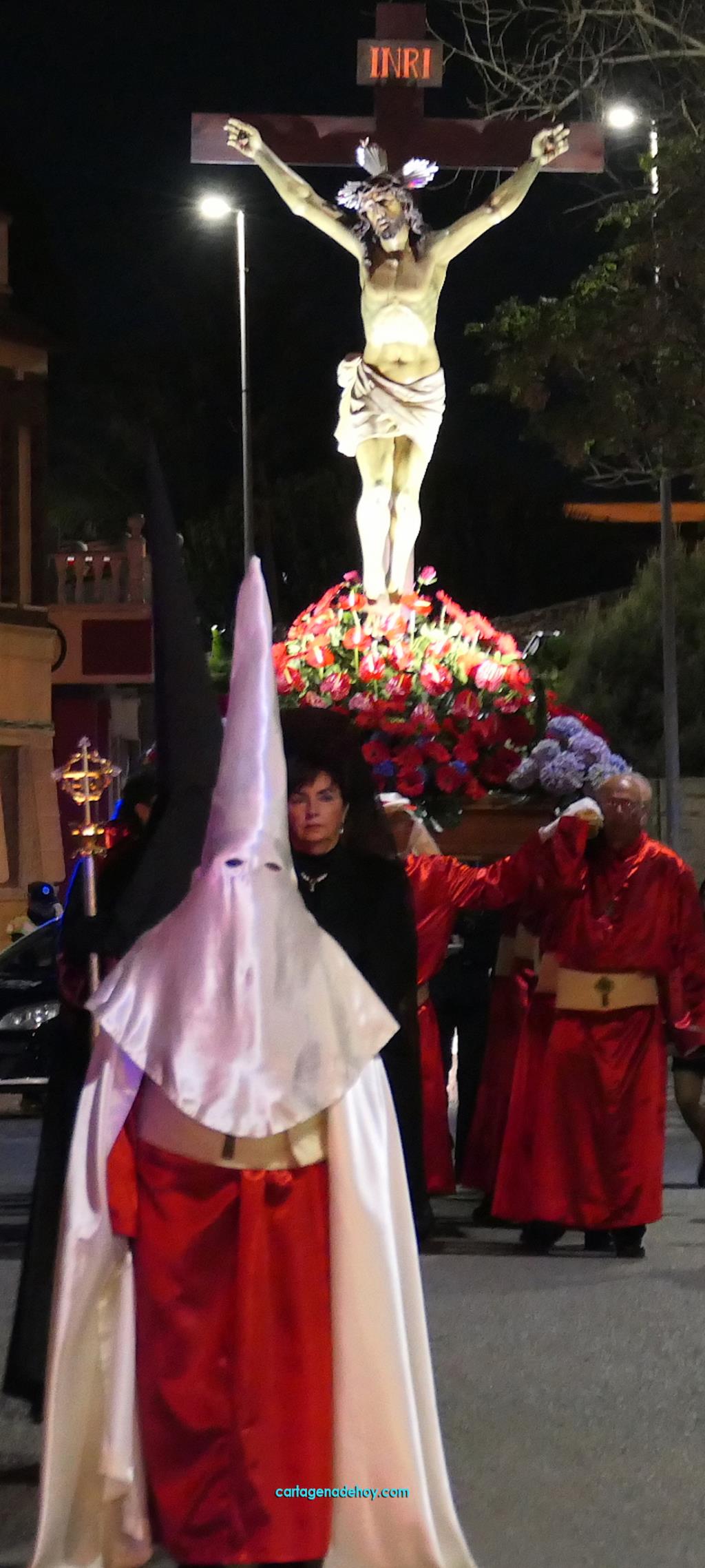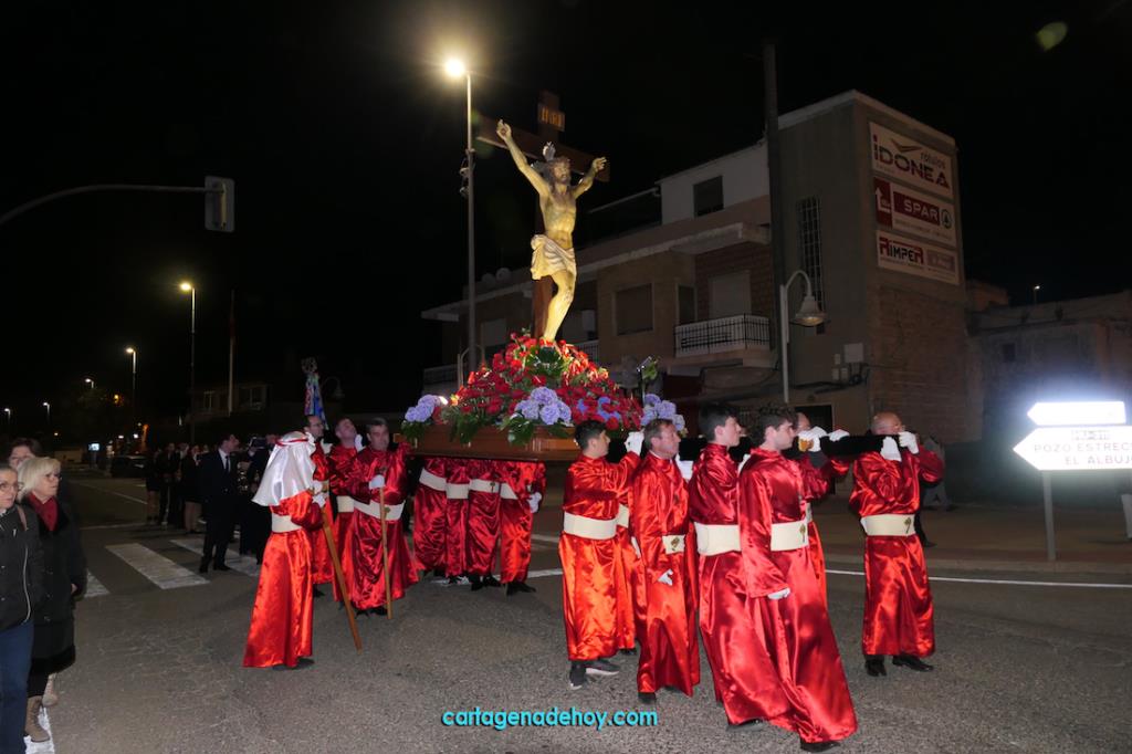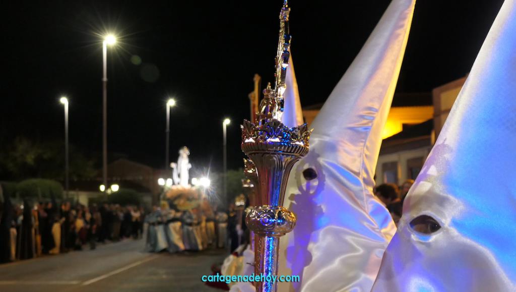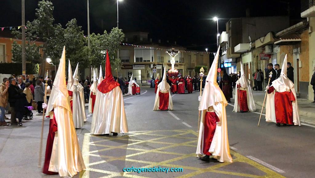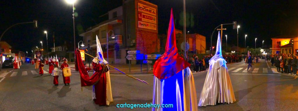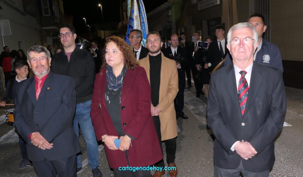 Destacar la presencia de sendas representaciones de la Semana Santa de La Puebla, con tres penitentes del Cristo de la Agonía con el Crucificado y tres de la Dolorosa con su homónima palmesana. También la amplia representación de MC en el cortejo, encabezada por su edil Enrique Pérez. Por otro lado, indicar que las dos bandas de músicas procedían del vecino municipio de Torre Pacheco y que los adornos florales de cada trono fueron tan diferentes como preciosos.