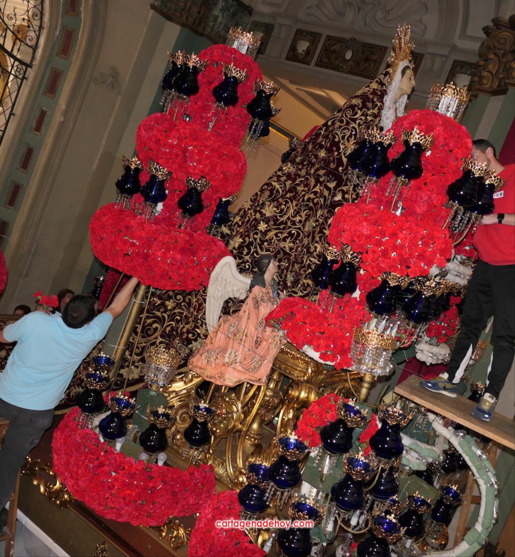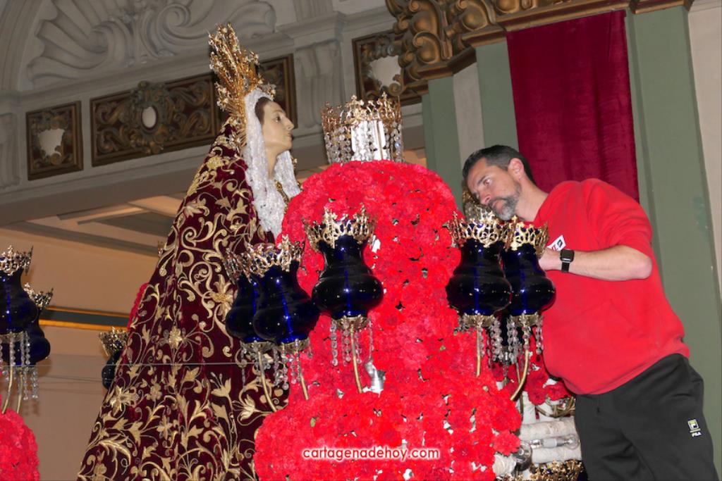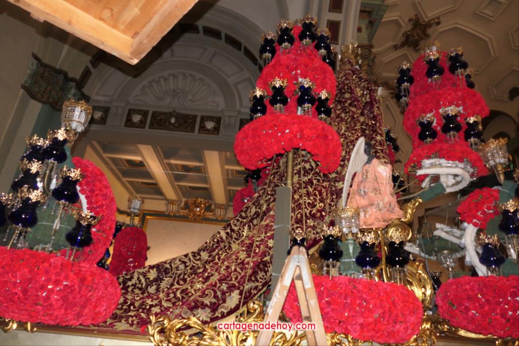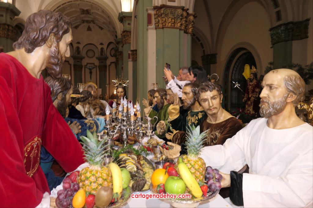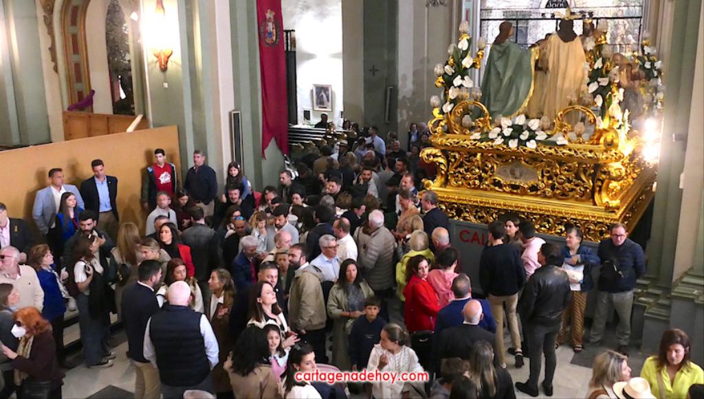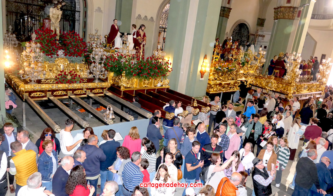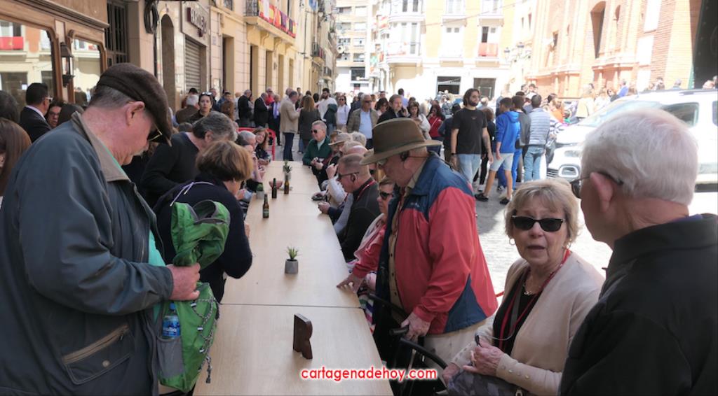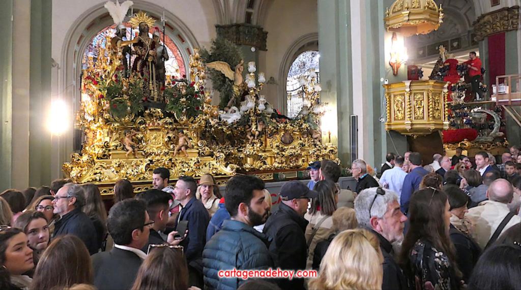 Hoy es día laboral, pero el casco antiguo de Cartagena presentaba todo el ambiente de una jornada festiva, con multitud de personas en las calles, siendo el lugar con más afluencia la iglesia desde donde salen los tronos de Semana Santa. Se han visto a muchos extranjeros visitando las tallas y haciendo uso de las terrazas de locales hosteleros.