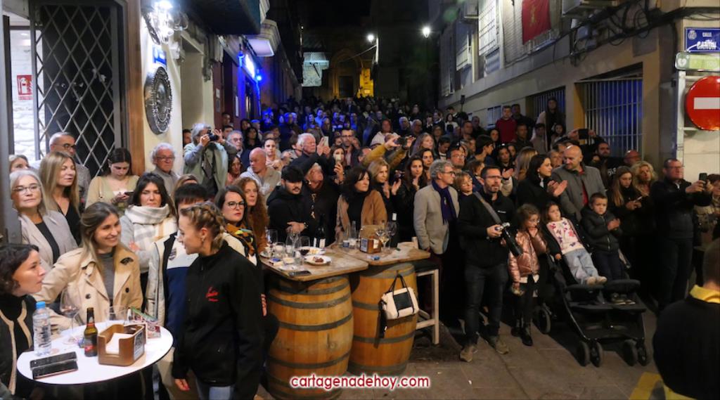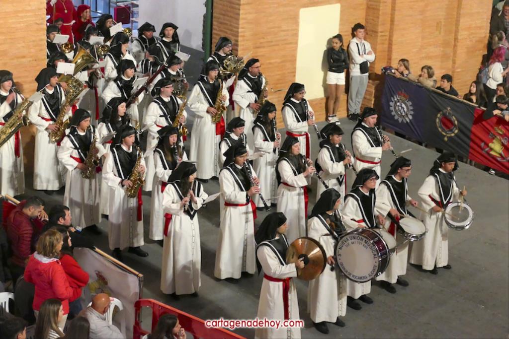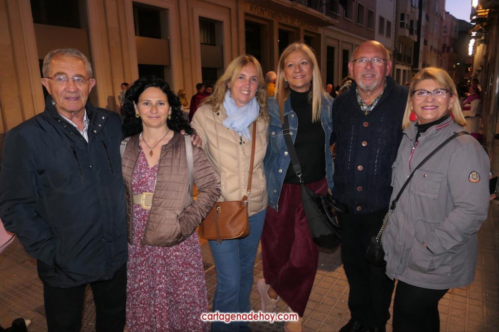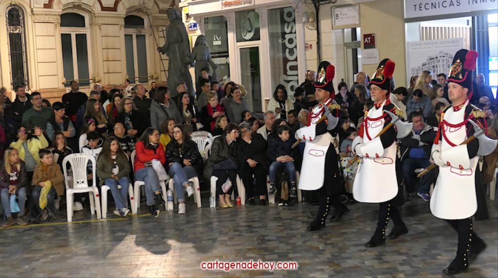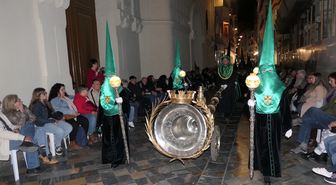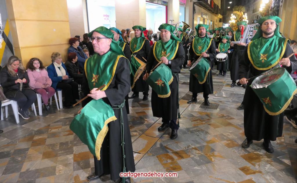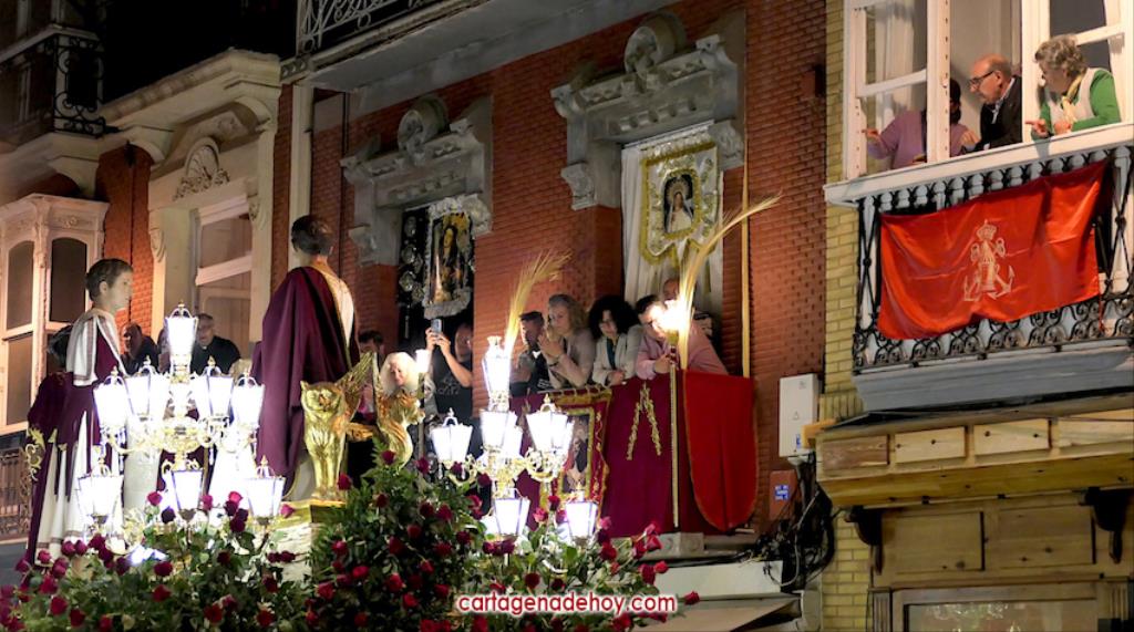 La noche coincidía con el 'clásico del fútbol español, un Barça-Real Madrid copero televisado en abierto, pero no se notó en cuanto a afluencia de público, que volvió a ser masiva. Seguro que hubo quien no fue a las procesiones por el balompié, pero apenas se notó. Hubo quienes compartía ambos con un pinganillo en la oreja o asomándose a televisores de bares y algunos establecimientos. Si goleada hubo (cuatro dianas) en el duelo copero, también goleada se dio en las calles de Cartagena.