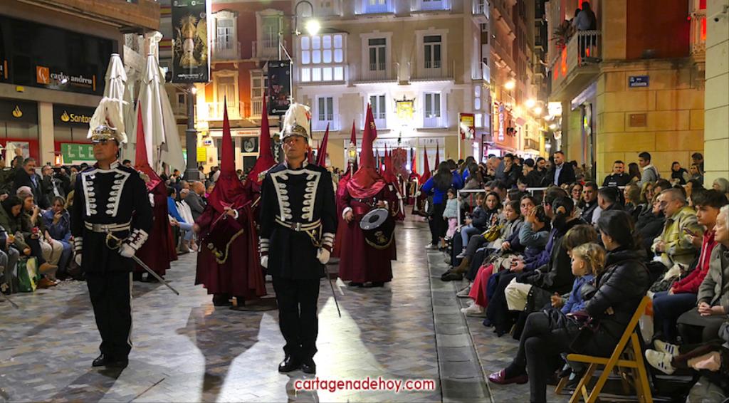 El desarrollo íntegro de la procesión, desde la salida hasta la recogida, puede verse en el vídeo del canal de Youtube 'Semana Santa de Cartagena':