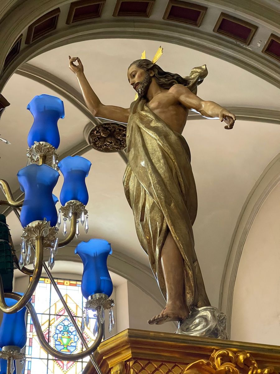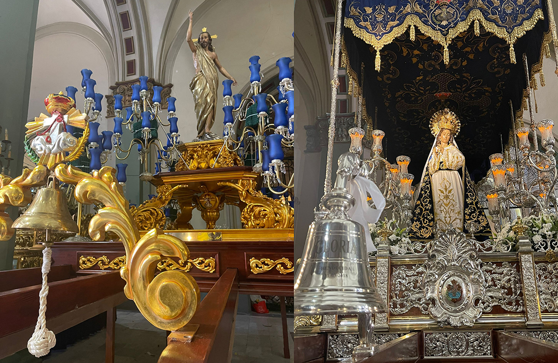 La cofradía ha llevado a cabo esta mañana la recogida de las imágenes de Jesús Resucitado y de la Virgen del Amor Hermoso en la iglesia de los Padres Claretianos, desde donde han estado tras el Resurrexit, hasta la iglesia de Santa María, donde han sido colocadas en los tronos para su salida en la procesión del Domingo de Resurrección.