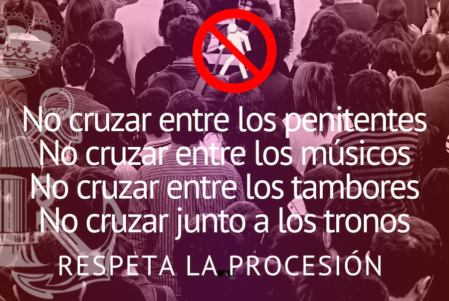 Es el segundo artículo que publicamos con este contenido, pero es que que hay motivos para hacerlo, ya que este año hemos observado un elevado número de casos de personas (en ocasiones grupos numerosos) que cruzan entre los tercios en las diferentes procesiones.