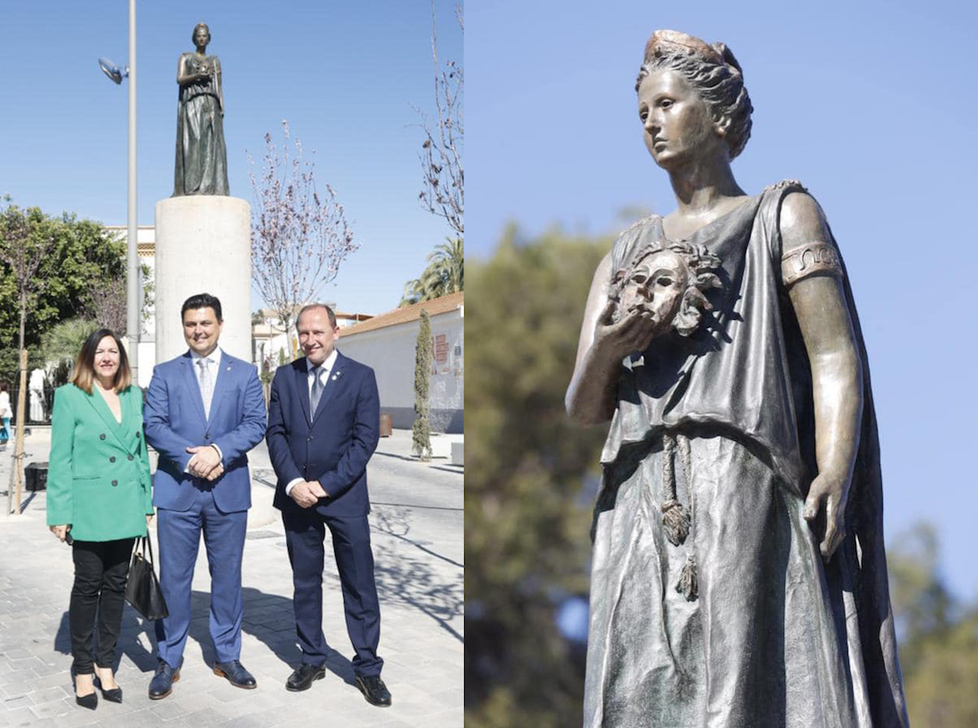 Juan José Quirós Illán ha sido el creador de la escultura en bronce y a tamaño natural de 'Melpómene', que se ha instalado en posición elevada para presidir la avenida de la Aviación Española de San Javier, en el área del remodelado Parque Almansa. El acto de inauguración contó con la música de la banda sinfónica loca y de una danza, además de que la actriz Esperanza Clares emuló a Melpómene para reivindicar el teatro como proyección y consuelo del ser humano.
