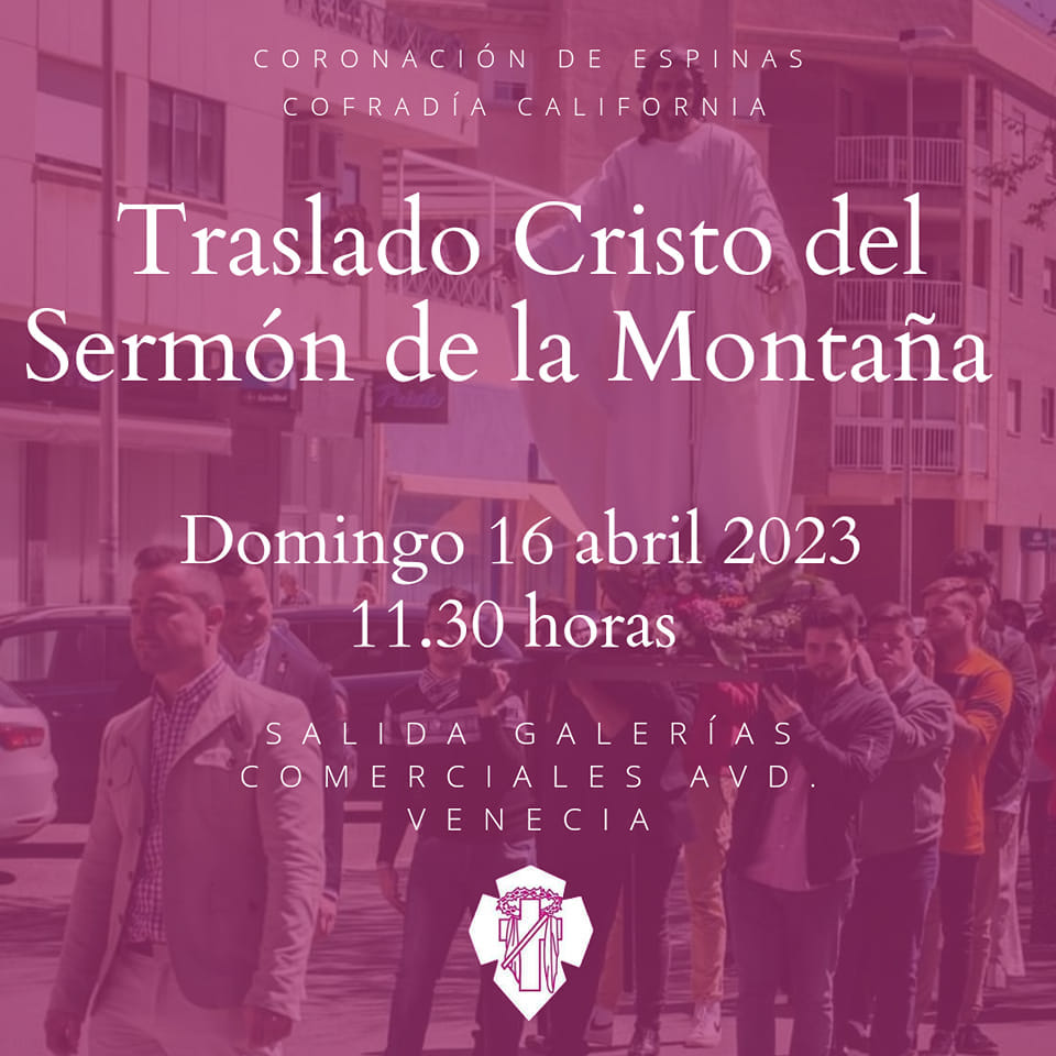 La imagen de Jesús del grupo del 'Sermón de la montaña', que la Agrupación de la Coronación de Espinas saca en procesión el Domingo de Ramos, regresa este próximo domingo, a partir de las 11.30 horas y arropada por sus fieles, a la iglesia de María Reina de los Corazones, donde se le rinde culto todo el año.