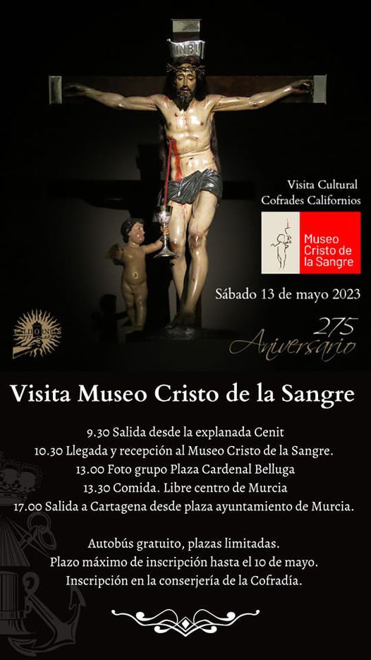La Cofradía de Cristo del Prendimiento organiza una visita al Museo del Cristo de la Sangre para el próximo sábado. La hermandad fletará un autobús con plazas limitadas (55) y gratuitas para los interesados, siendo el plazo máximo para apuntarse este miércoles.