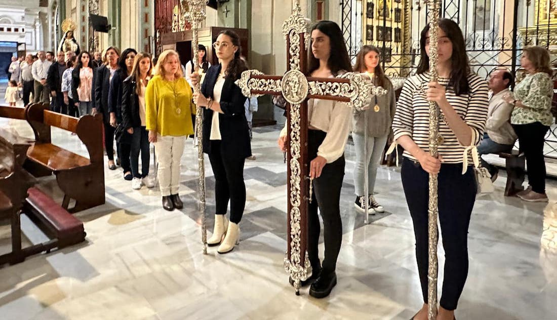 La 'madre' de la Cofradía de Jesús Resucitado protagonizó el tradicional 'Vía Lucis' por el interior del templo de Santa María de Gracia, entre la capilla donde se le rinde culto y el altar mayor.